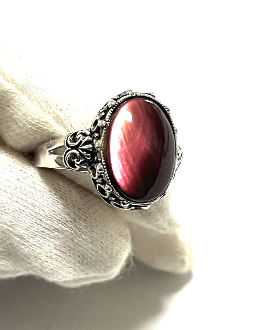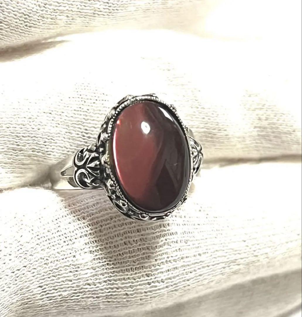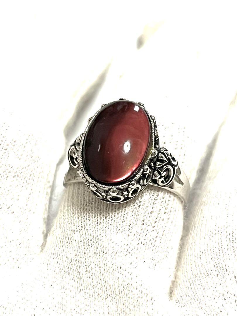 ガーネットキャッツアイ ヴィンテージ シルバー リング 赤 指輪