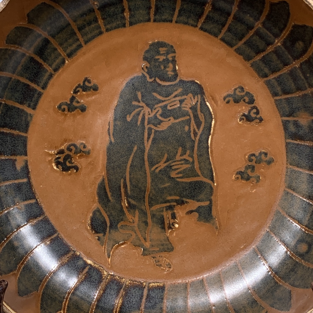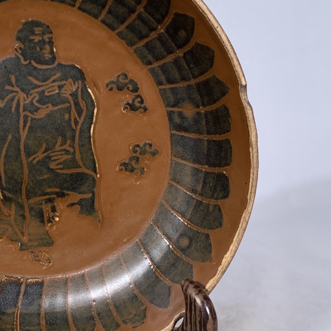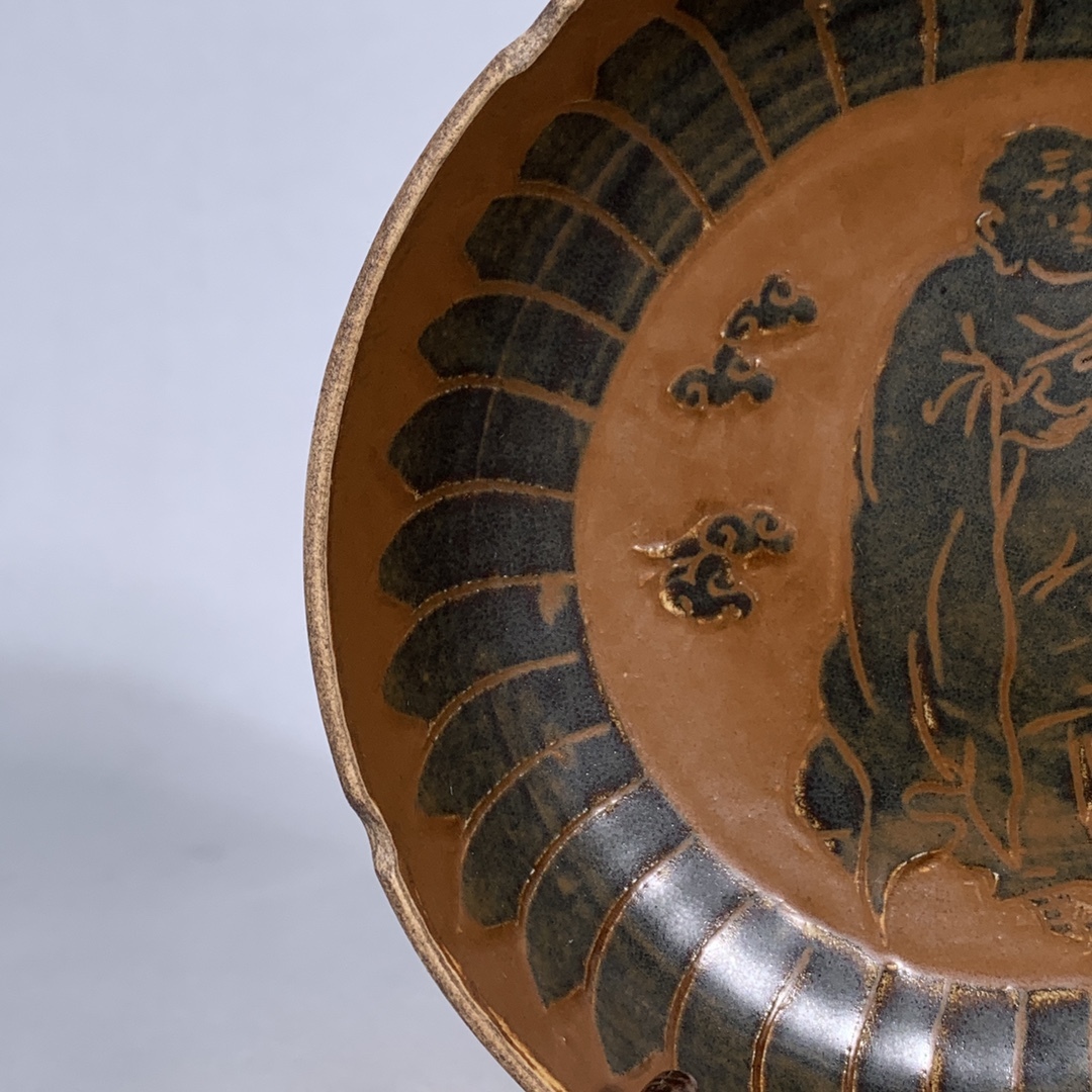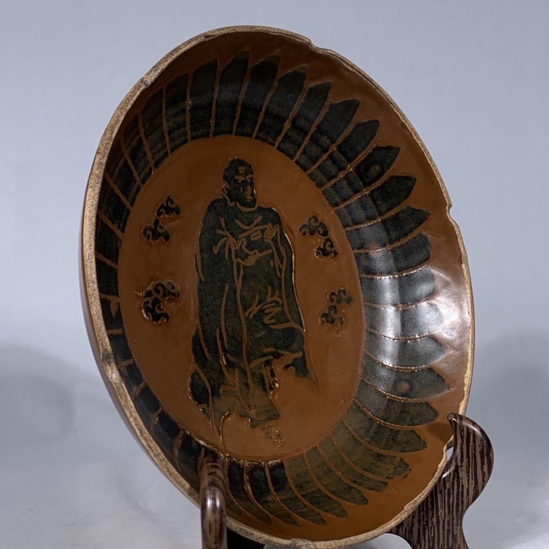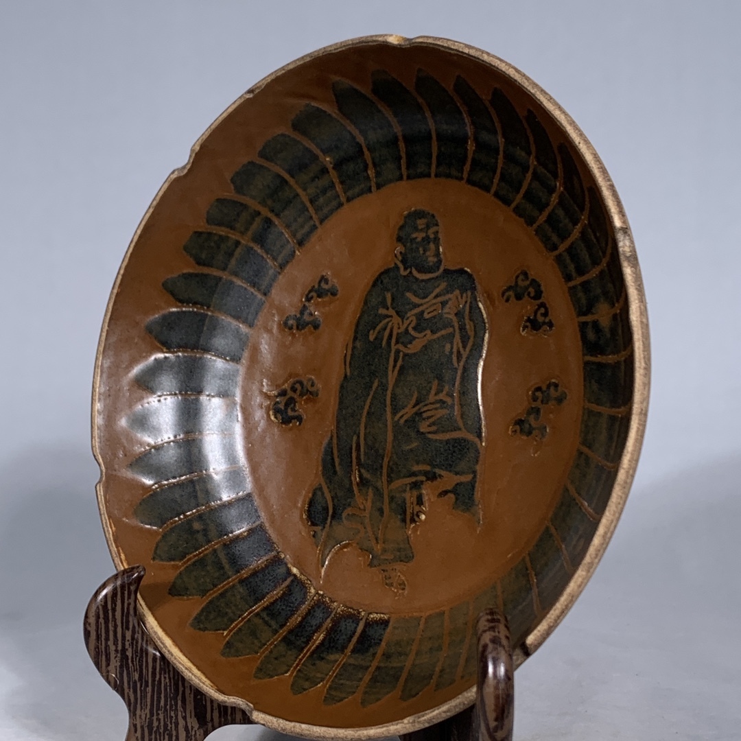 唐物 宋 定窯 醤釉 達摩図 葵口皿 陶芸 古陶磁器 中国美術品 時代物 D63