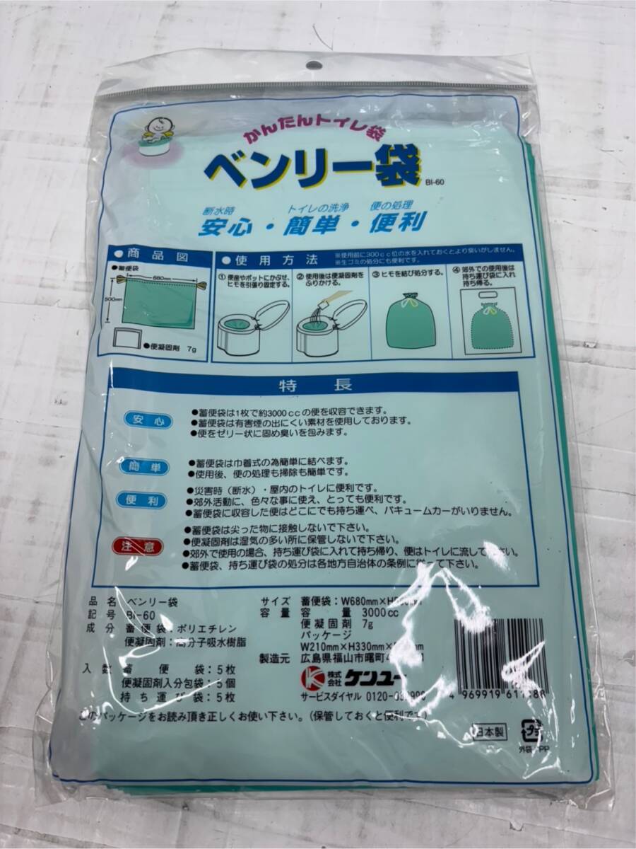 | [商品名] | 送料無料h3531 ケンユー ベンリー袋 かんたんトイレ袋 BI-60 ワイド 災害用品 5枚入 6セット まとめ 未使用品 | |||||||||