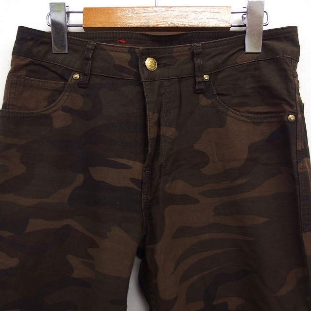 ルージュヴィフ Rouge vif カモフラージュ柄 スキニー スリム パンツ コットン 綿 36 ブラウン 茶 /FT44 レディース