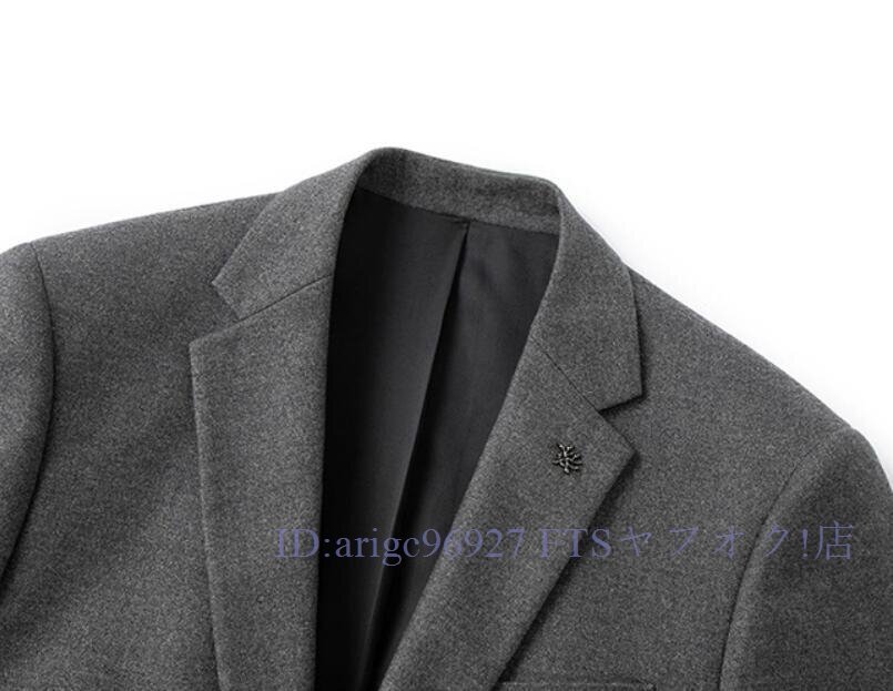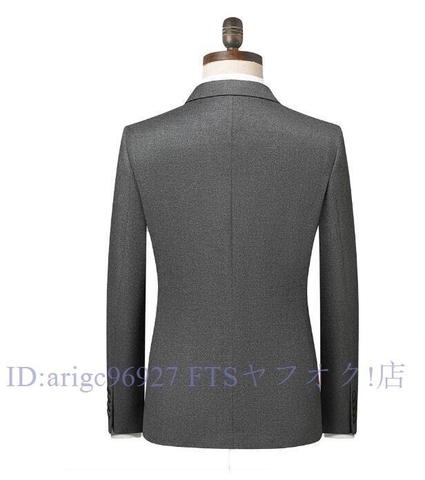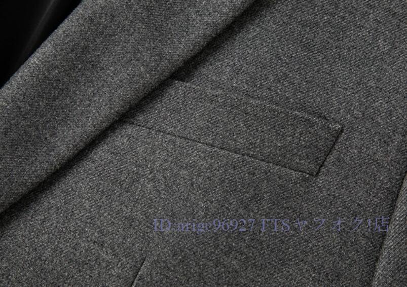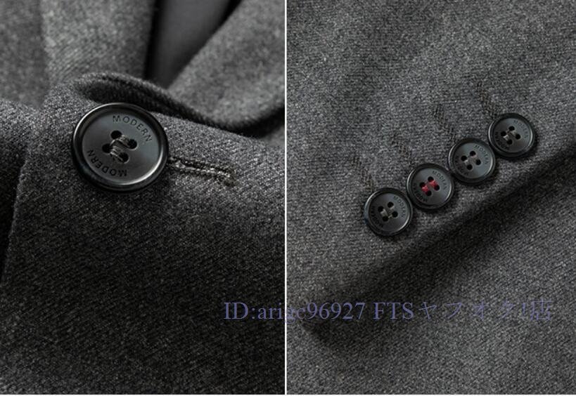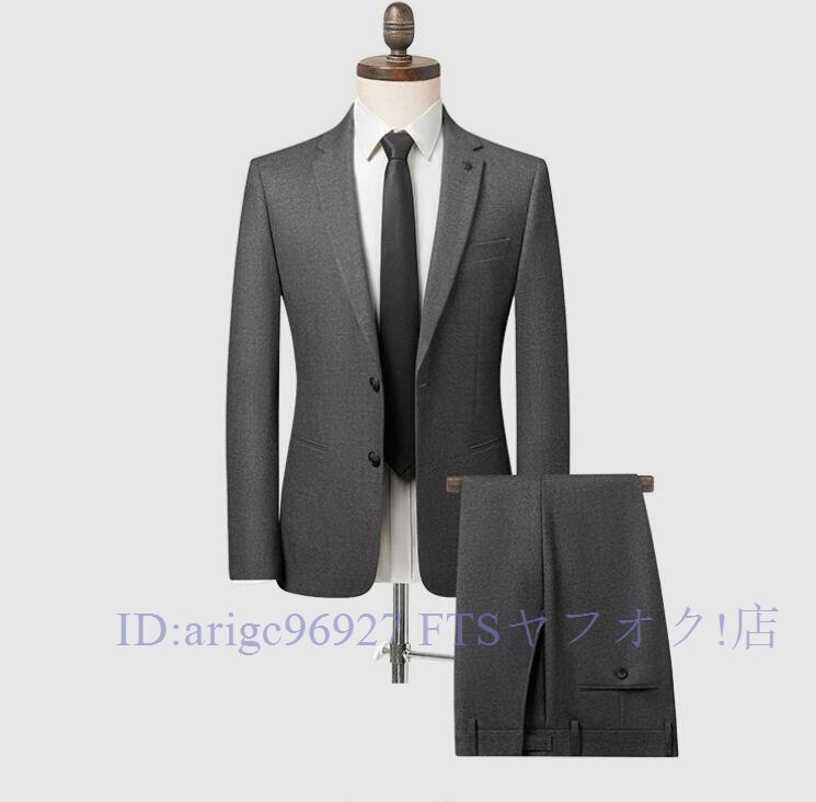 ★新品ウール混 シングルスーツ メンズ 厚手 ビジネス セットアップスーツ ウエスト伸縮有り パンツ スーツセット 無地 灰サイズ選択可