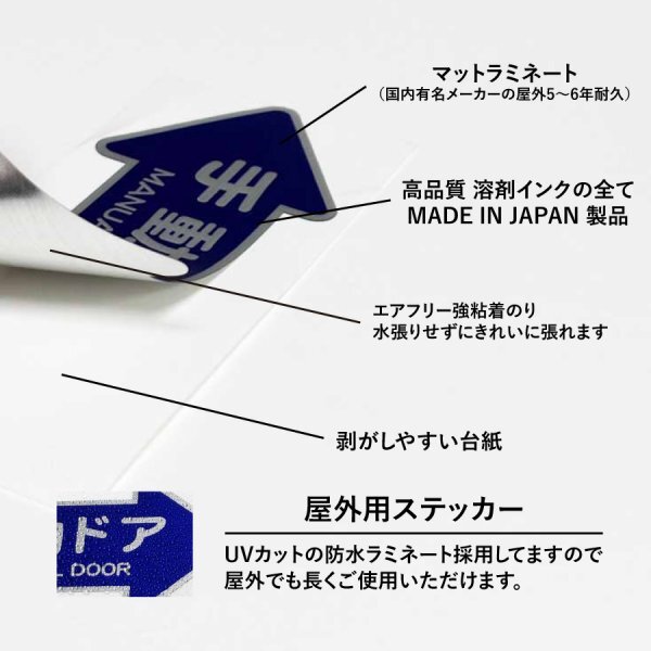 ●耐水・耐候性の高い国産ヘアラインシートをベースに、溶剤インク印刷・UVカット・マットラミネート加工しております。