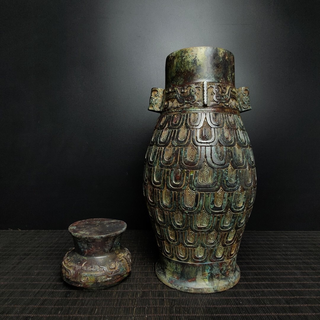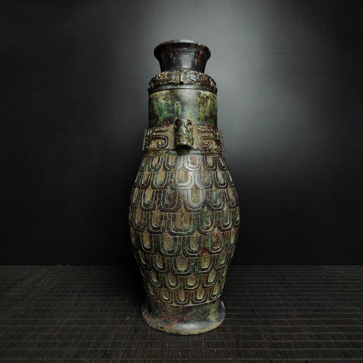 | 【蔵友館蔵品・戦・青銅製・高瓶】・希少珍品・置物・賞物・中国時代美術 |