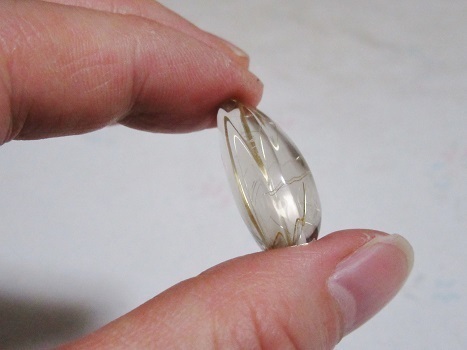 素材 | ◆素材:石:「超透明!輝く黄金針入り水晶」 ★極上3Aゴールドタイチンルチルクォーツ カボションタンブル ★【ブラジル産】 ★ポーチ付き ★重さ約5.7g |