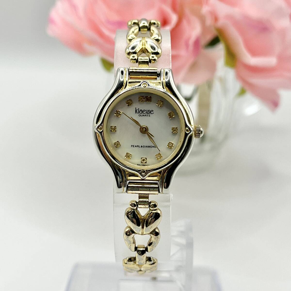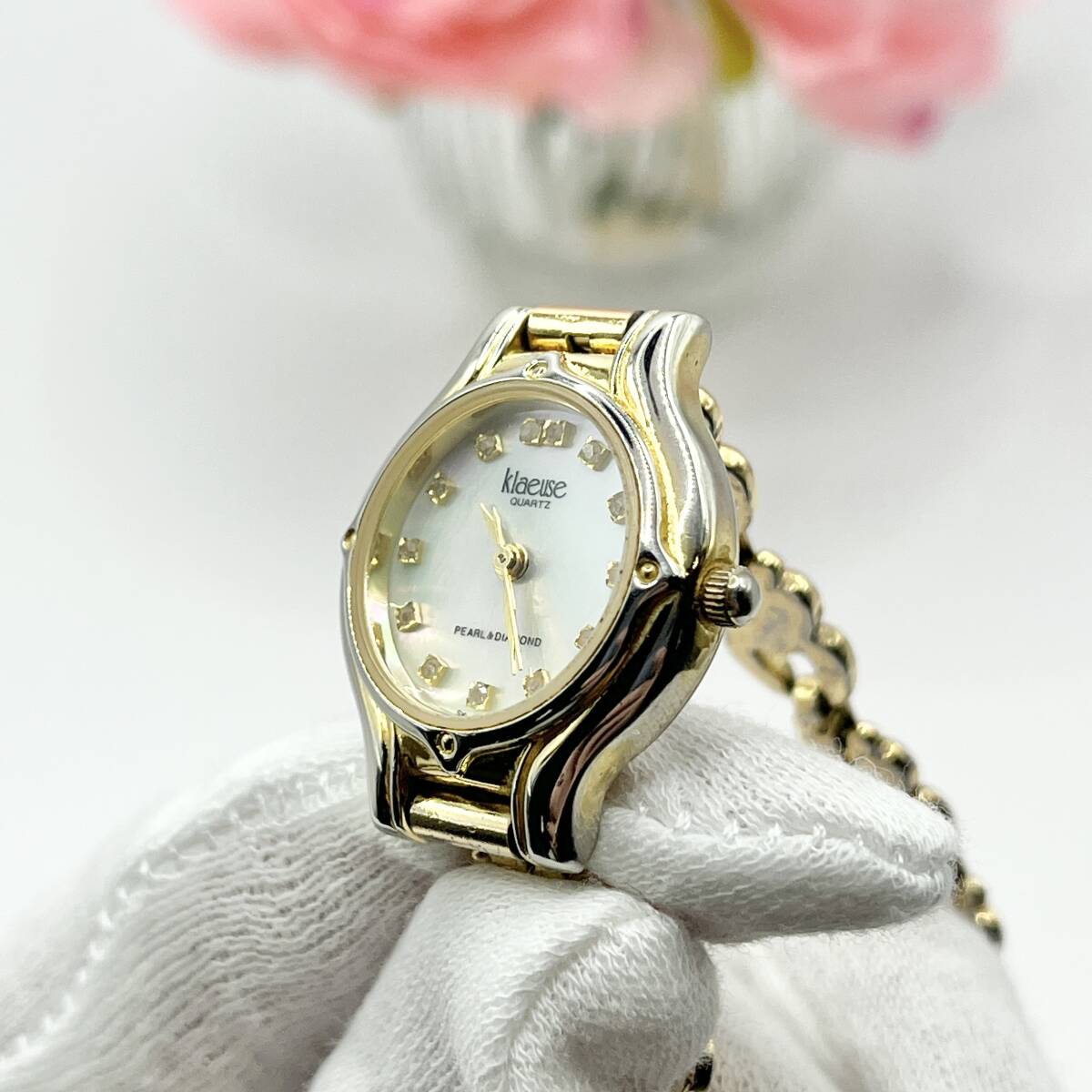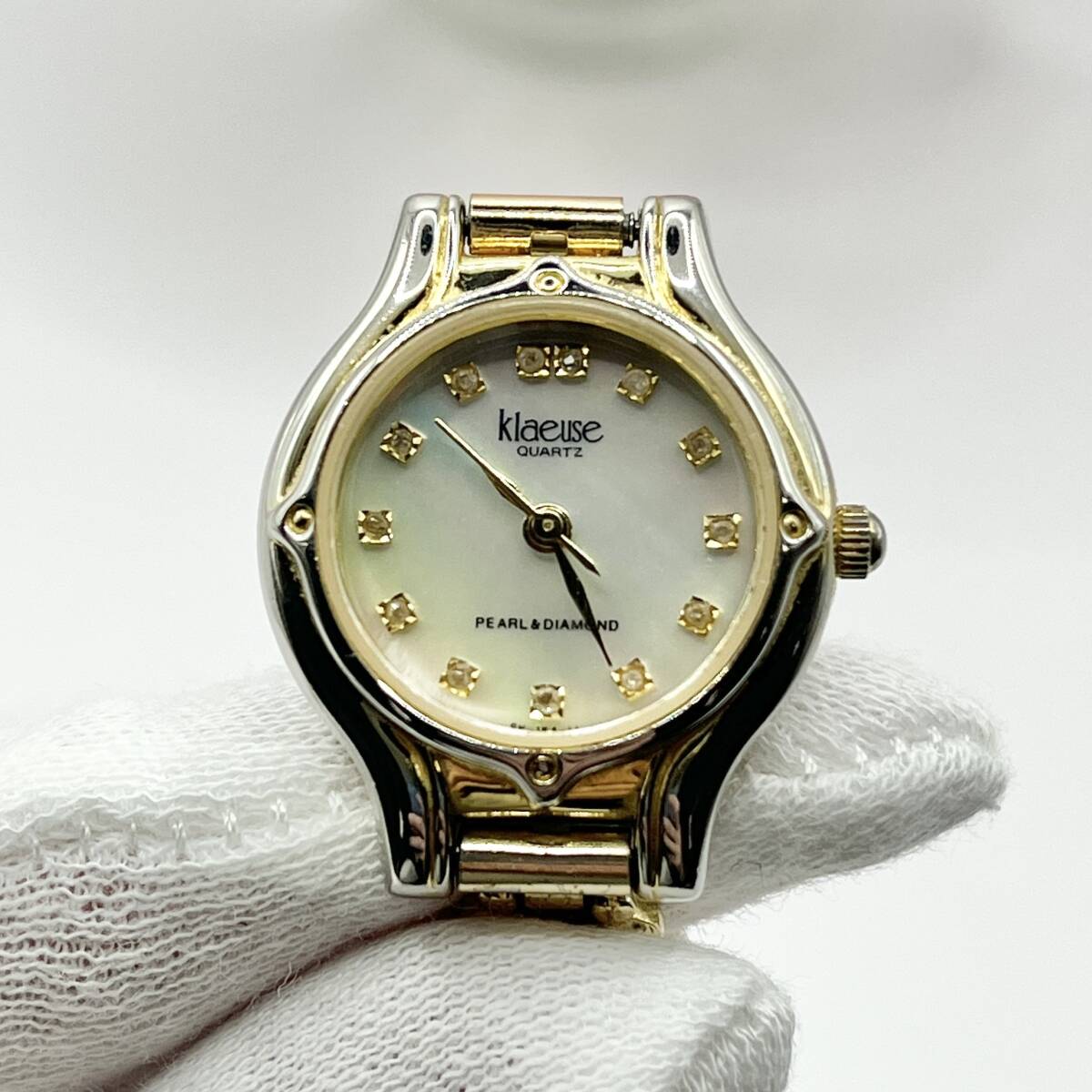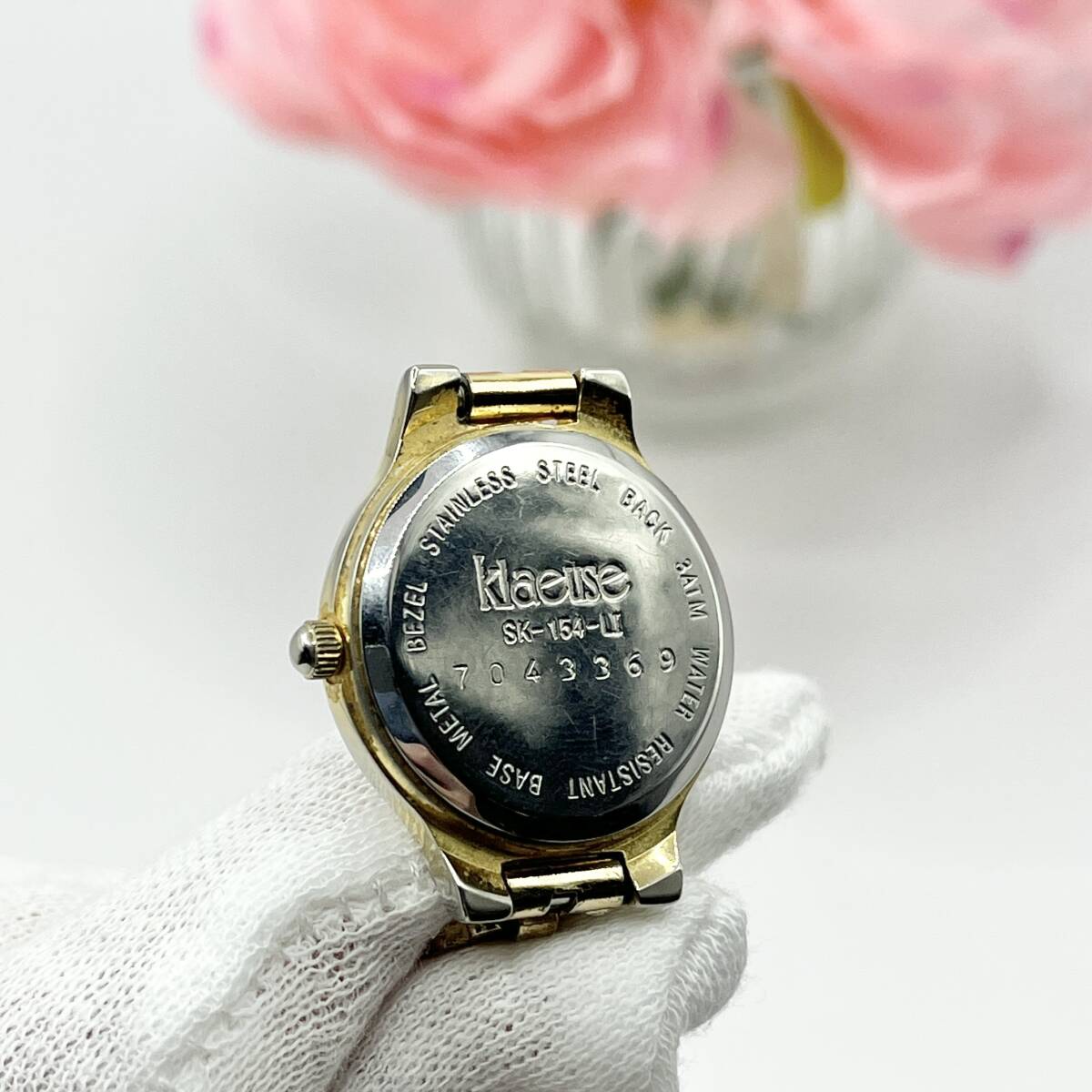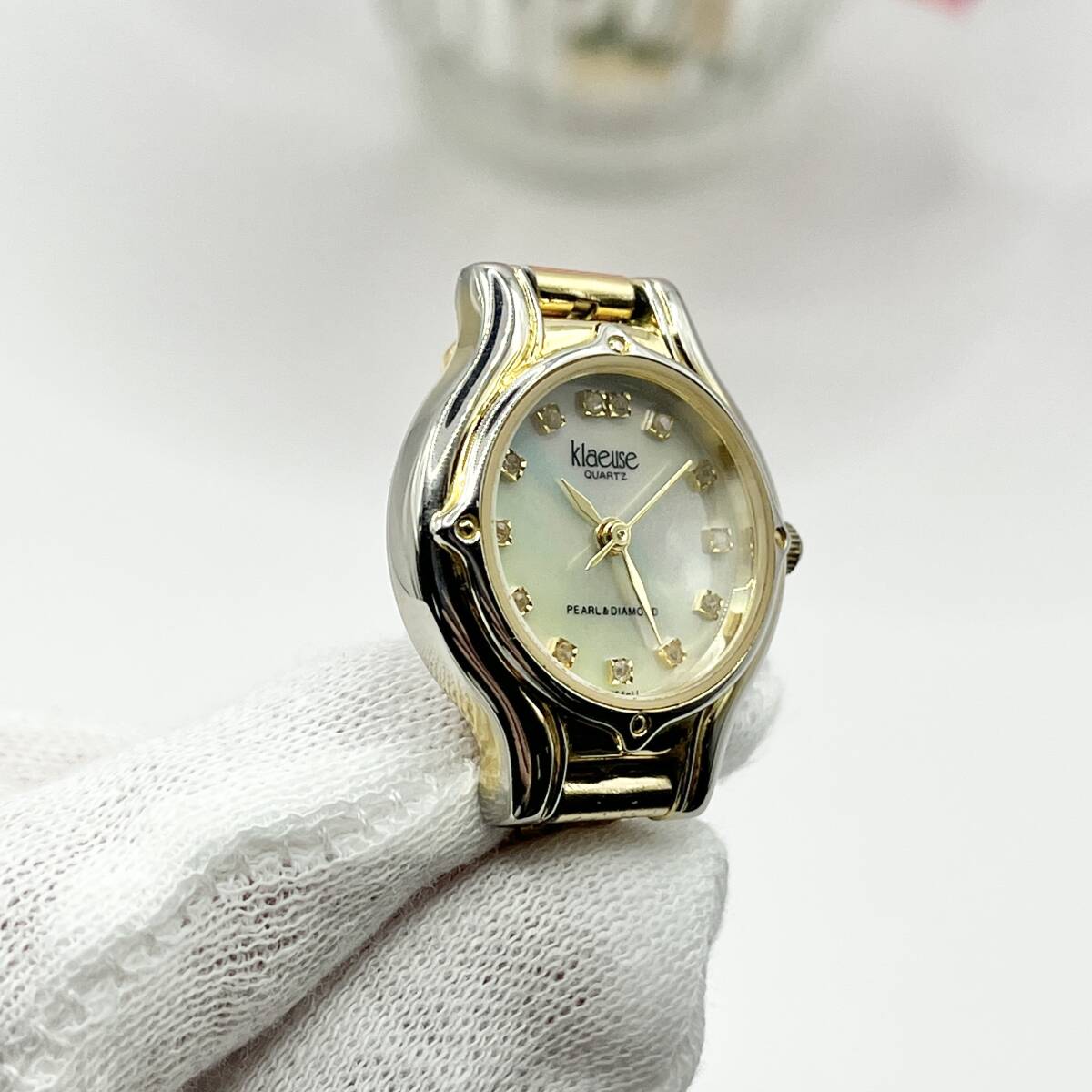 《稼働品》です! 《2025年2月9日に電池交換済》 《稼働品》Klaeuse★クロイゼ★シェル文字盤★クォーツ 腕時計★レディースの紹介です! ※全体的に金メッキの色あせ、ベルト裏側に変色ありますが、まだまだご使用頂けます。風防、ガラス面綺麗です。 【サイズ】 ・ケースサイズ 横: 約22mm (リューズは除く) ・ベルト内寸(腕周り) 約16cm(メジャーで内回りを計測) 【購入場所】 鑑定済みのネットショップから購入した正規品です 【梱包発送について】 発送はゆうパケットポストで行います ※注意 ・照明や撮影環境により、実物と若干お色が違う場合がございます。予めご了承ください。 ・こちらのお品は中古品の為、記載しきれない軽微なダメージもございます。中古品に理解のある方のみお願いいたします。 ・値段交渉中でも、即購入していただいた方優先です! ・無言購入OKです 管理番号:530.