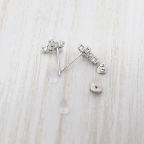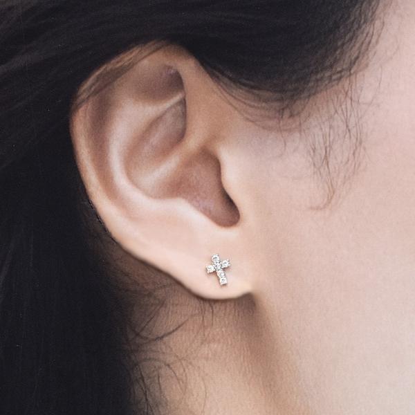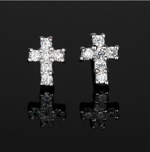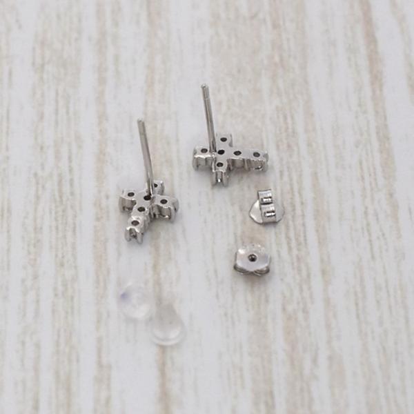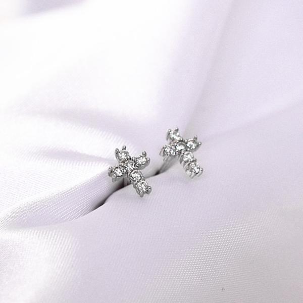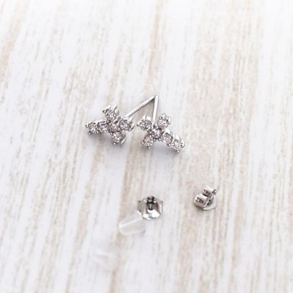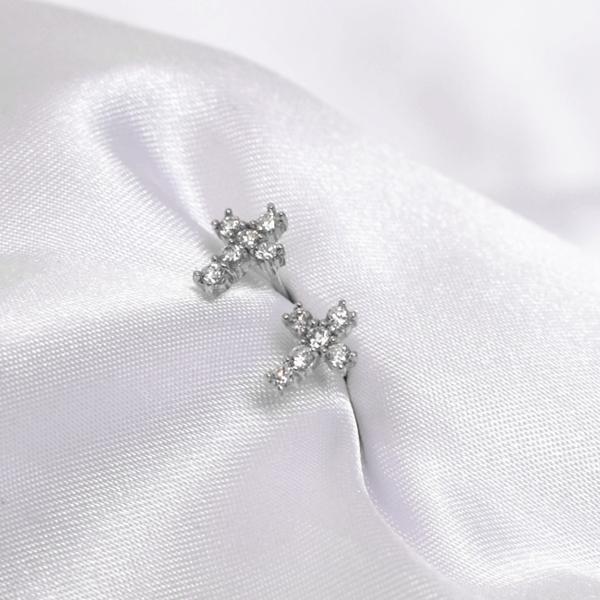 ●金属素材:シルバー925(刻印あり)。プラチナ仕上げ。●クロス:横約7mm、縦約9mm、厚さ約2mm。●ストーン素材: キュービックジルコニア、直径1.9mm/個 。●ポストの長さ約1.1cm、ポストの太さ約0.7cm。 ●キャッチ: シルバー925、1組付き。耳に優しいシリコンゴムキャッチ2組(1組2個セット)付き。