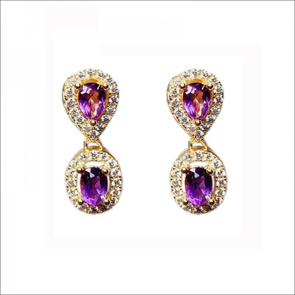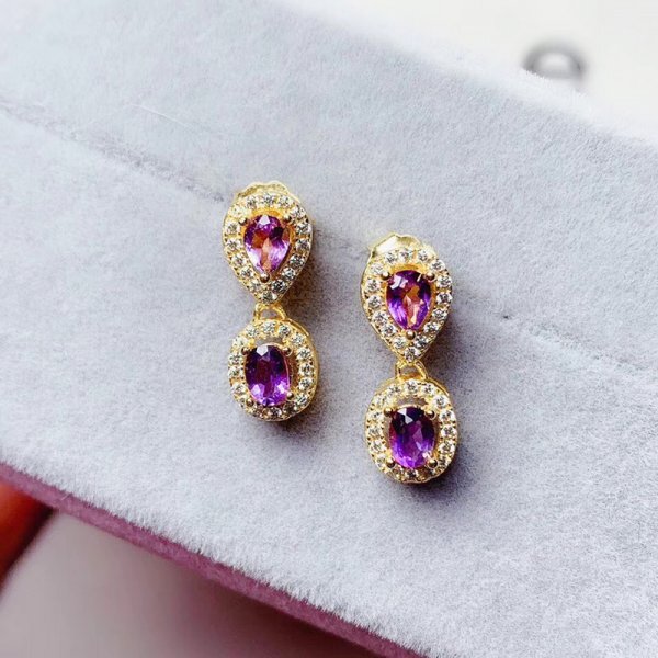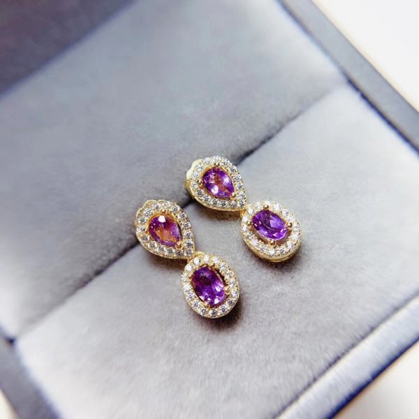 925 シルバー天然アメジストドロップピアス、4 個天然アメジスト空中ブランコ乗りためのファッションピアス