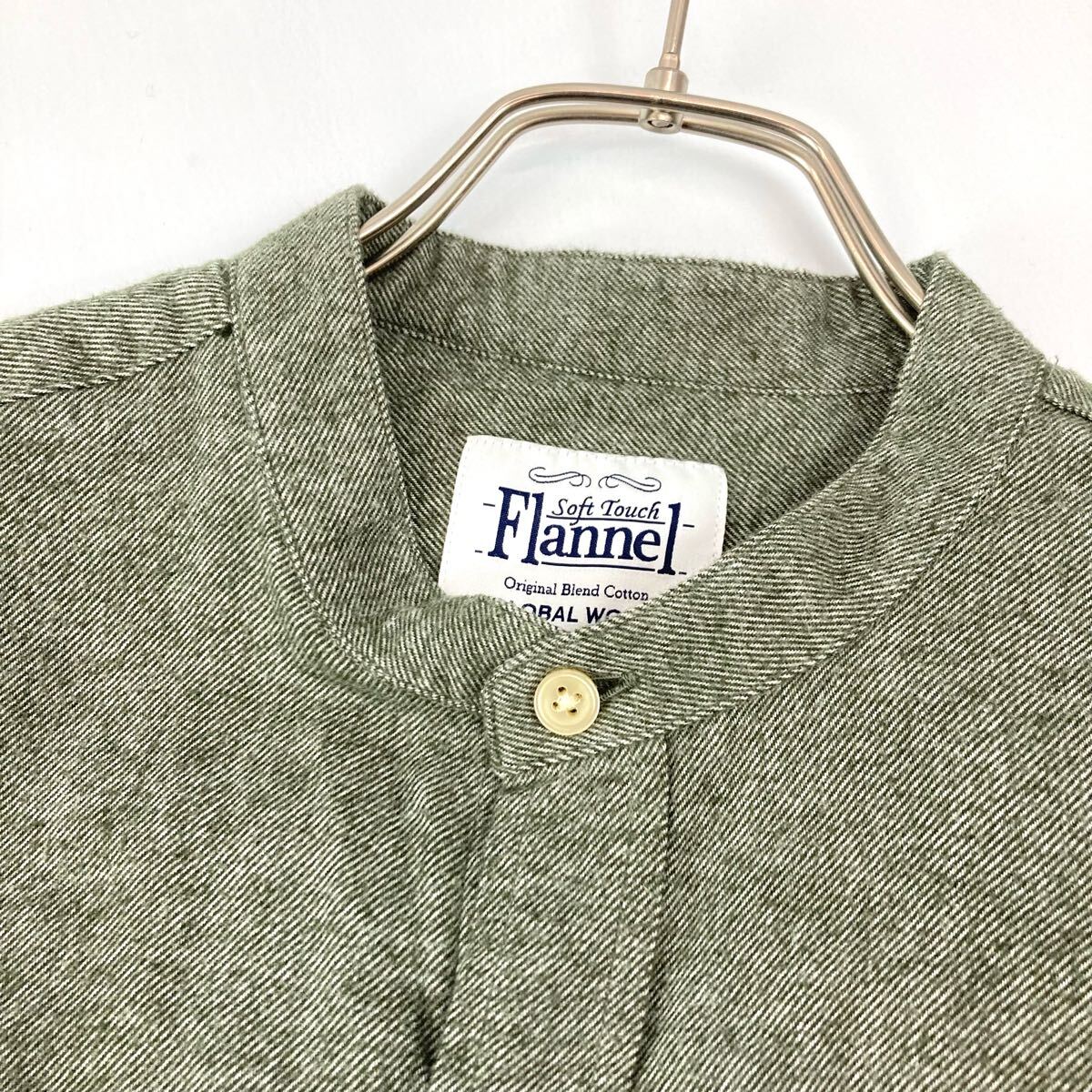 | GLOBAL WORK グローバルワーク ソフトタッチ フランネルシャツ バンドカラー コットン 長袖 メンズ サイズS | ||||||||||||||||||