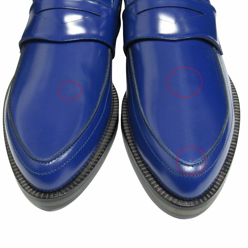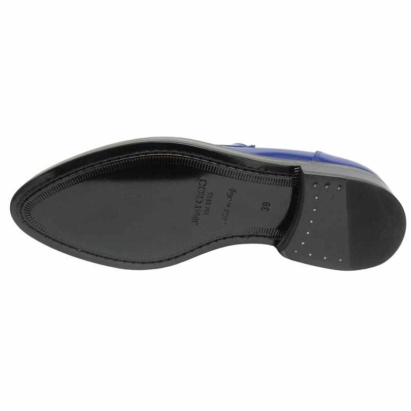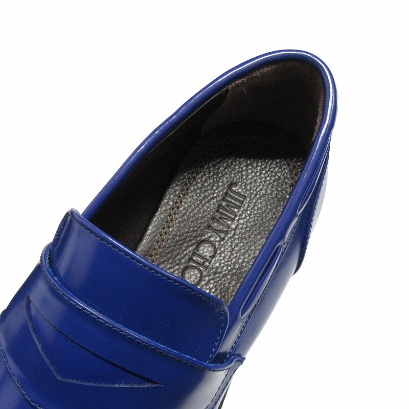 未使用品 ジミーチュウ JIMMY CHOO ポインテッドトゥ レザー コイン ローファー ドレス シューズ 靴 39 (24cm) 青 ブルー メンズ ■3