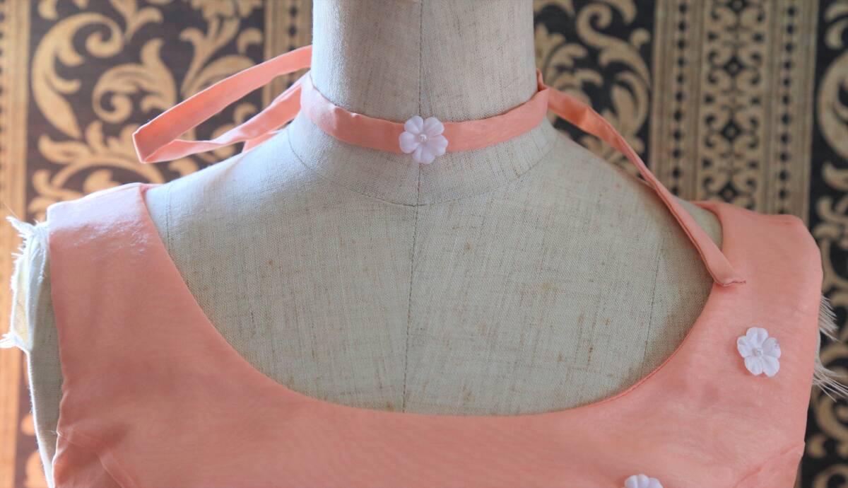 生地はサテン生地の上にオーガンジーを重ねた生地