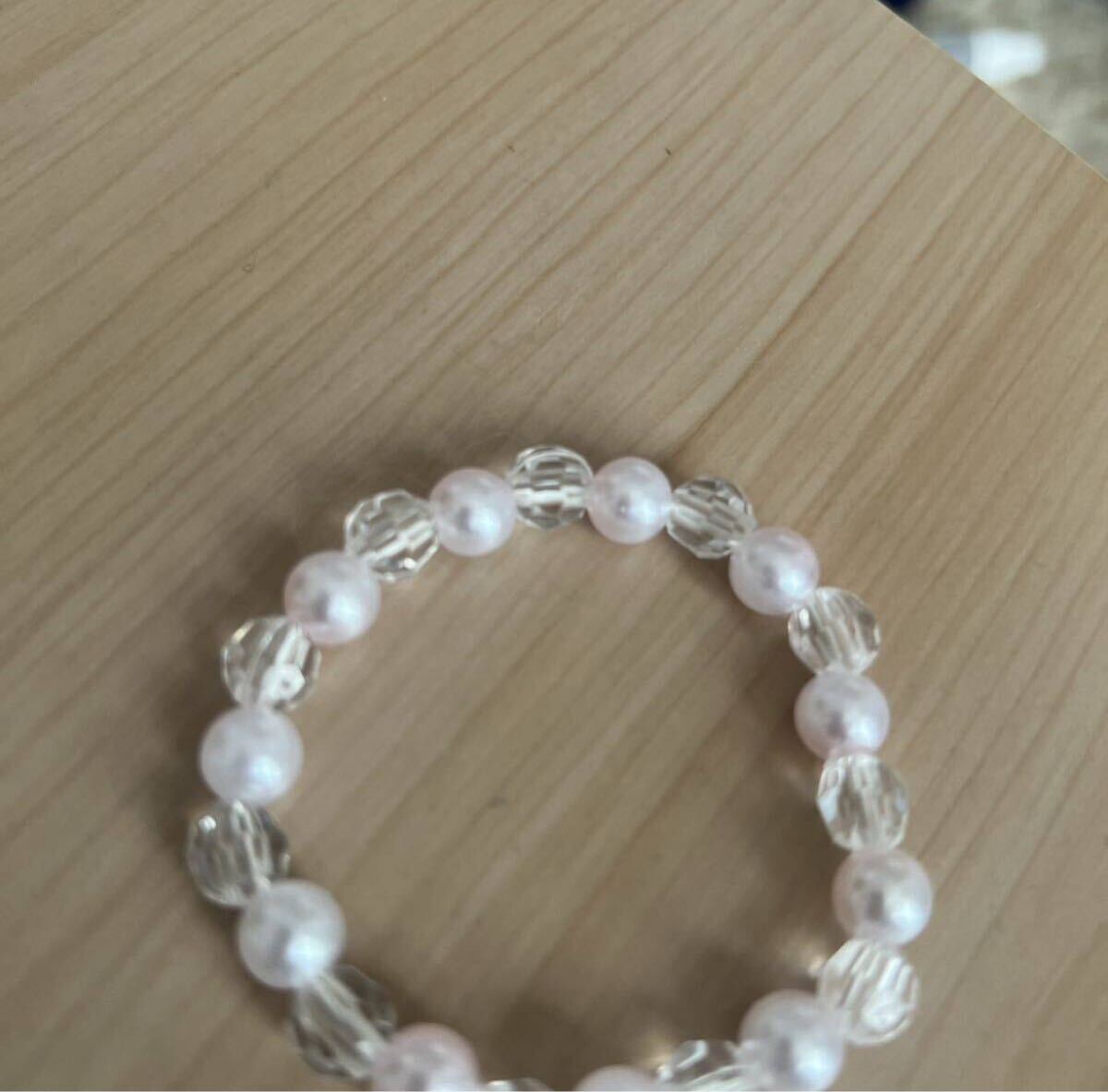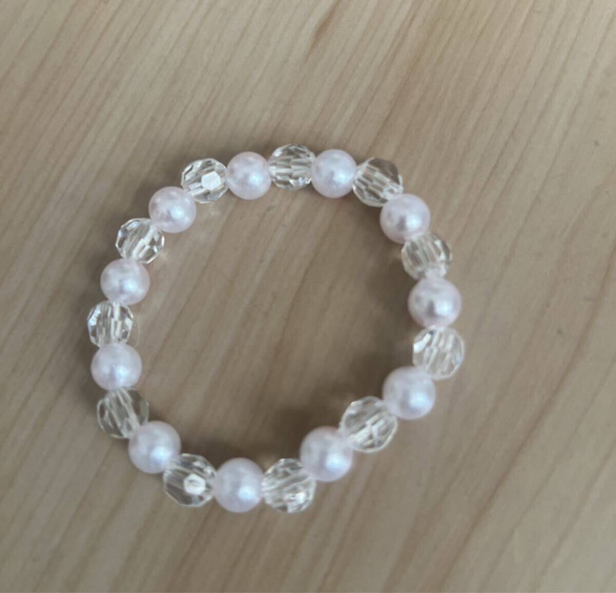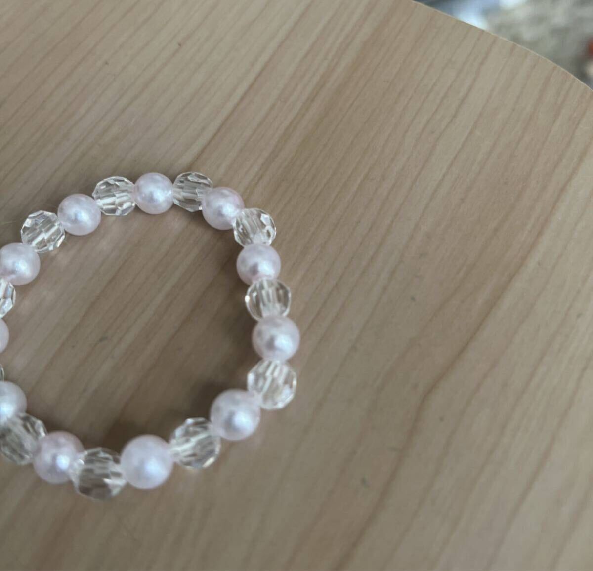 ピンクがかったパールのようなビーズのキッズブレスレット。