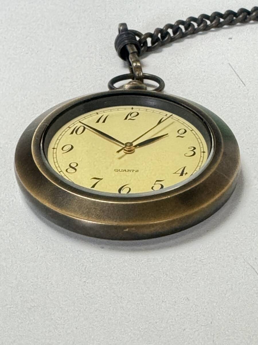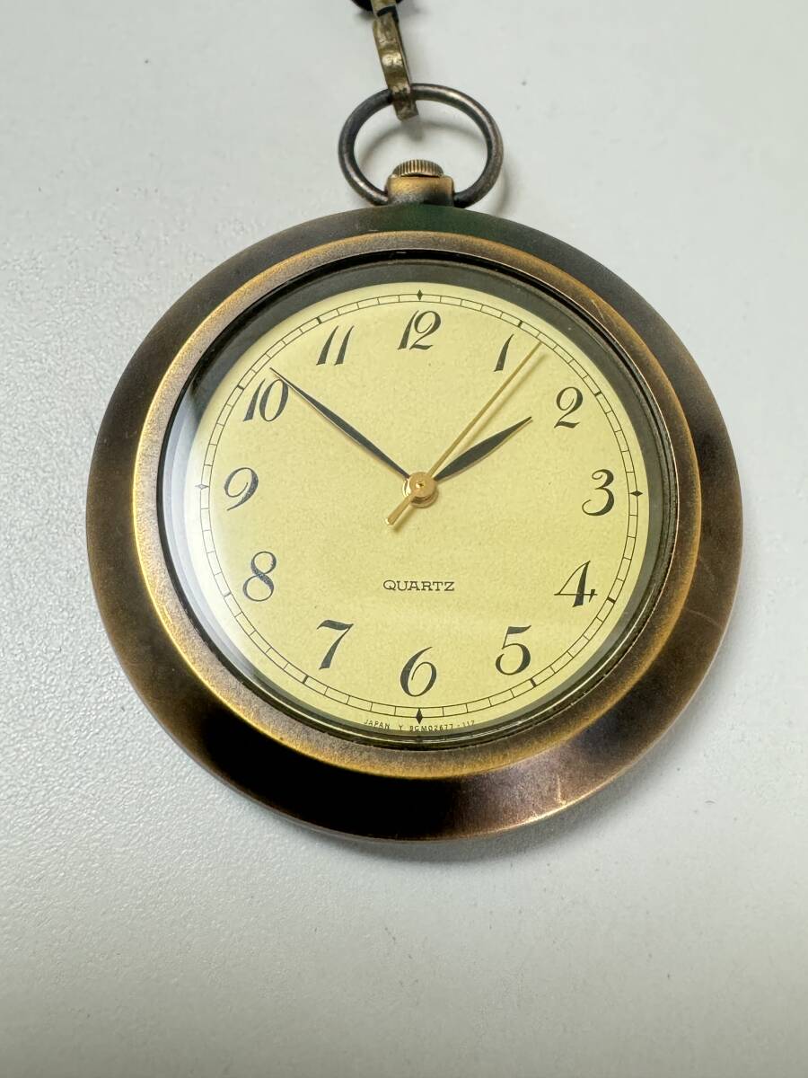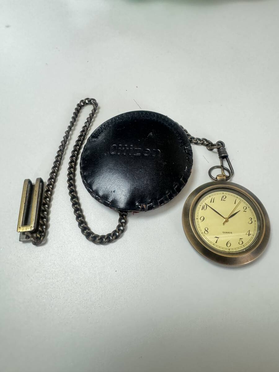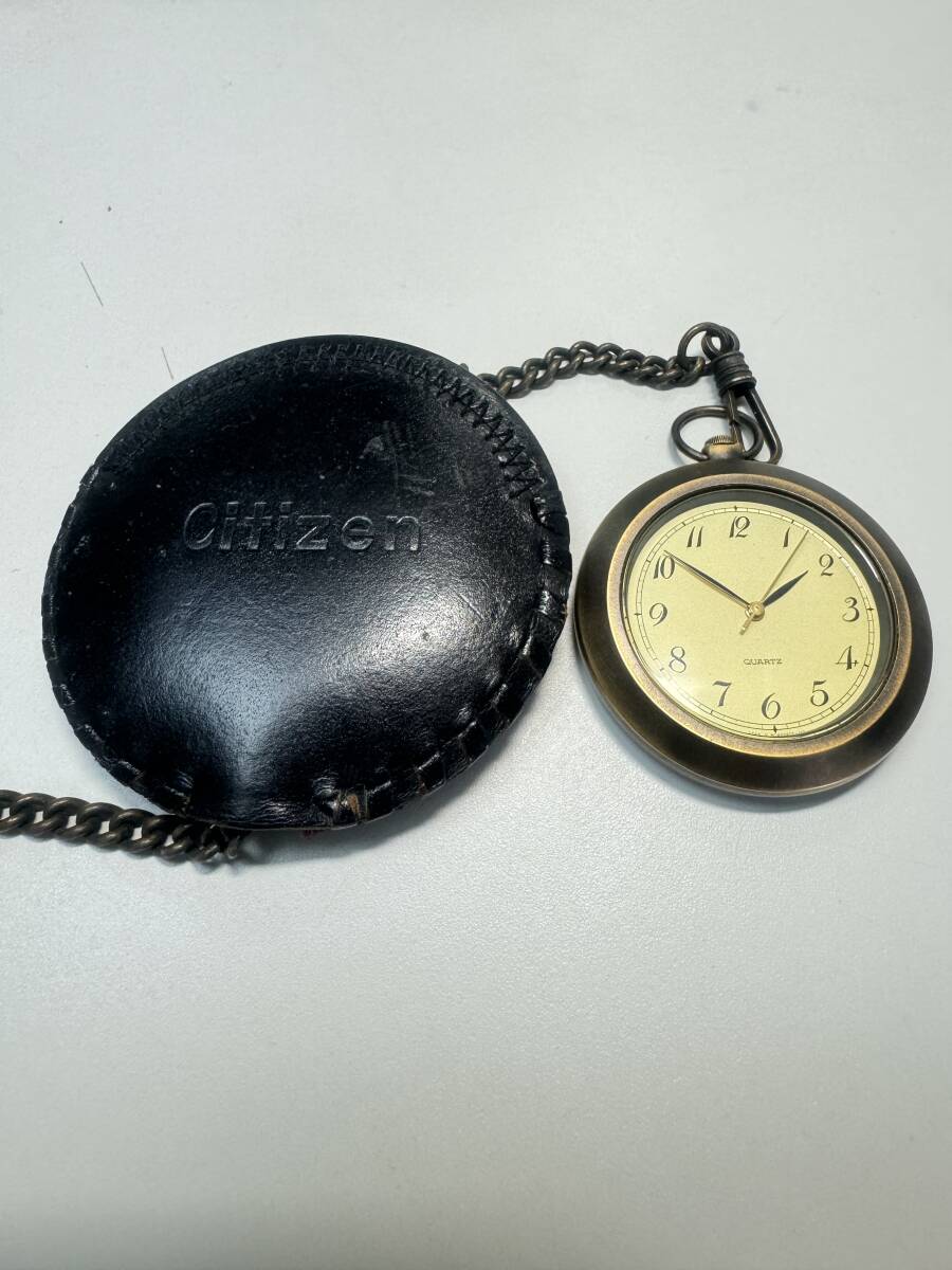 P439 懐中時計 ソフトケース・チェーン付 Citizen/シチズン M02677-112 クォーツ ラウンド 3針 ゴールド文字盤 ポケットウォッチ