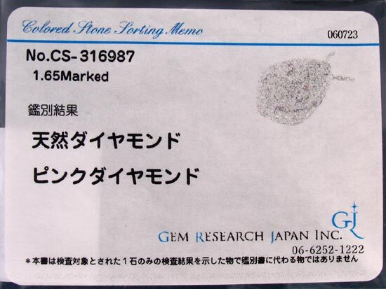 中石:ダイヤ ピンクダイヤ 1.65ct(合計)