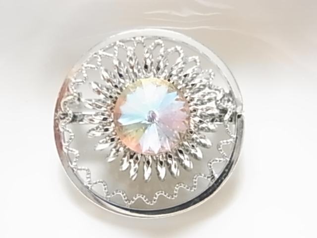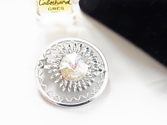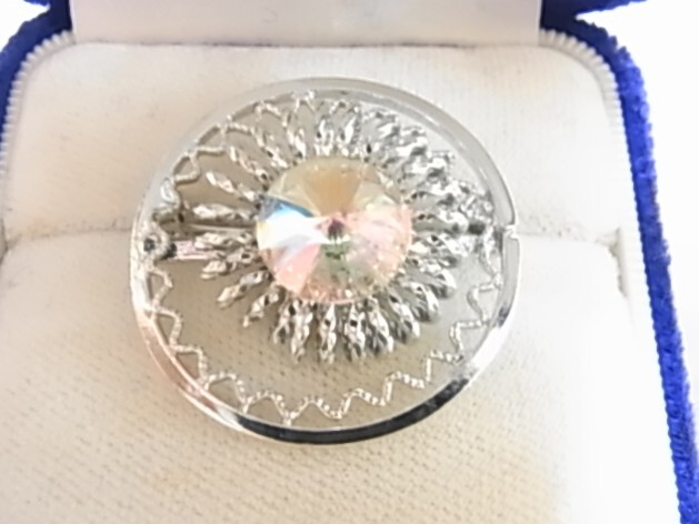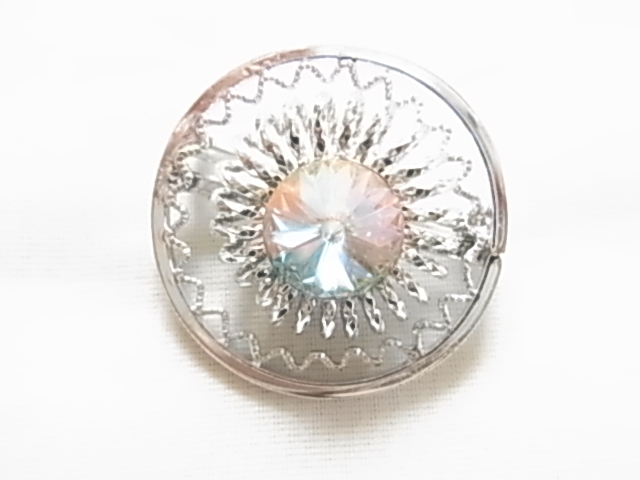 ■ビンテージ/ヴィンテージ オーロラトーンのストーンが煌いて綺麗 シルバートーン 銀色系 昭和レトロの素敵なブローチ