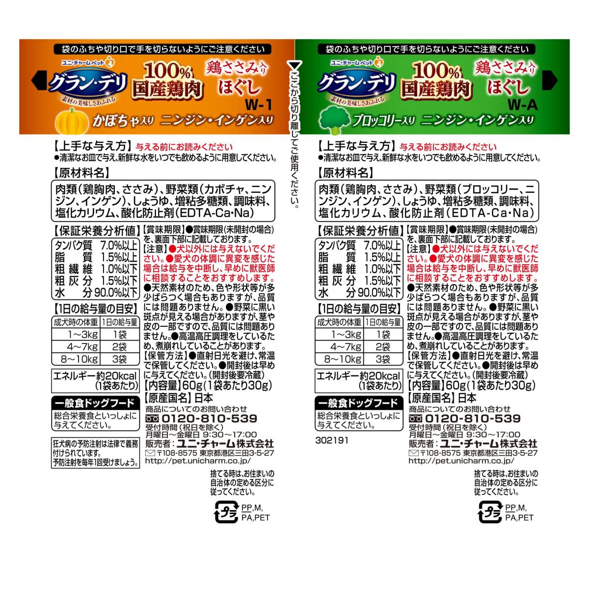 | 商品名 | グラン・デリ 2つの味わいパウチ ほぐし 成犬用 ブロッコリー&かぼちゃ 30g×2×15個 | ||