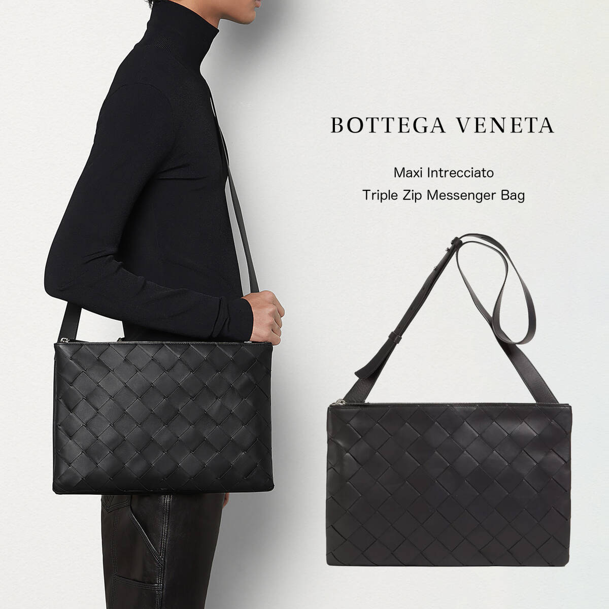 Maxi Intrecciato Triple Zip Crossbody Bag