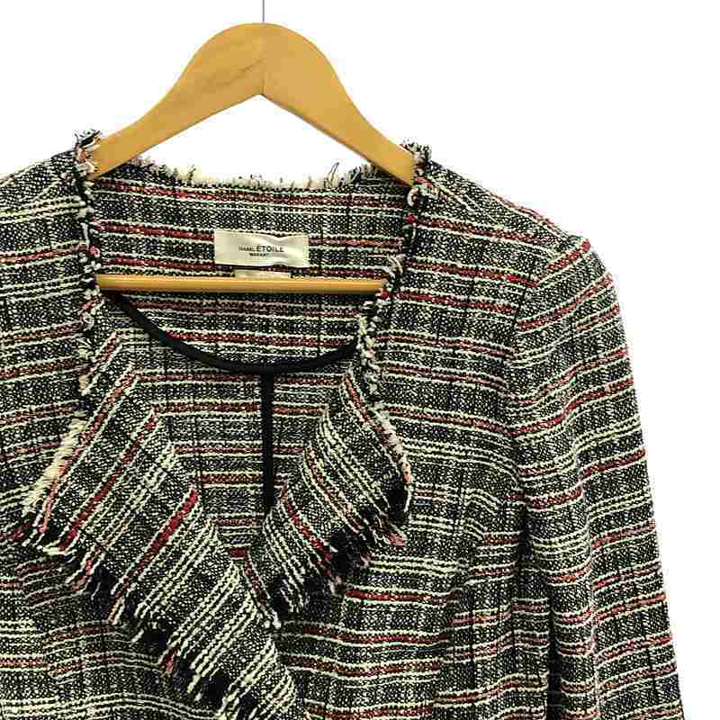 ISABEL MARANT ETOILE / イザベルマランエトワール | ノーカラーツイードジャケット | S | ブラック×レッド | レディース