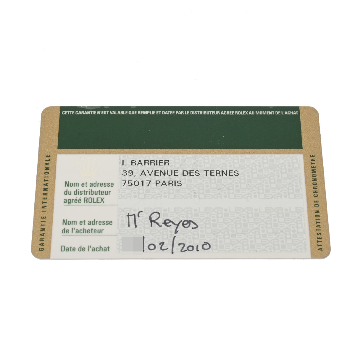 付属品メーカー保証書(2010年2月海外購入)