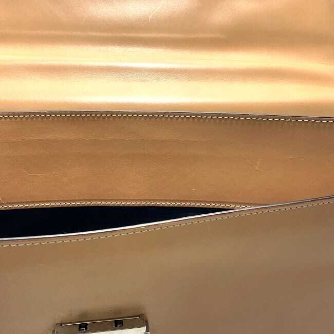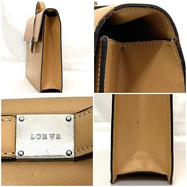 詳細説明 | 底部の角に擦れ、コバに剥がれ、表面の所々に小傷や汚れや皺、金具に傷など使用感はございますが比較的綺麗なお品物です。 |