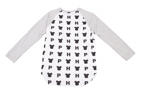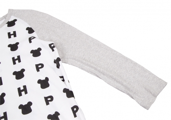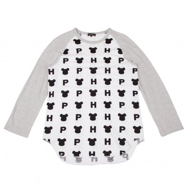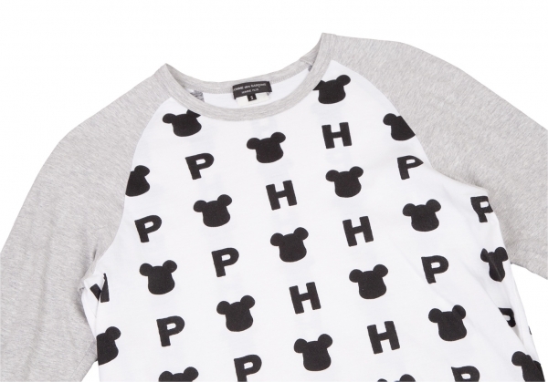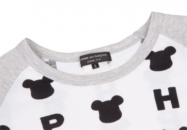 | コムデギャルソン オムプリュス×メディコムトイCOMME des GARCONS HOMME PLUS×MEDICOM TOY ベアブリックプリントラグランカットソー 白グレー黒S |