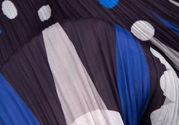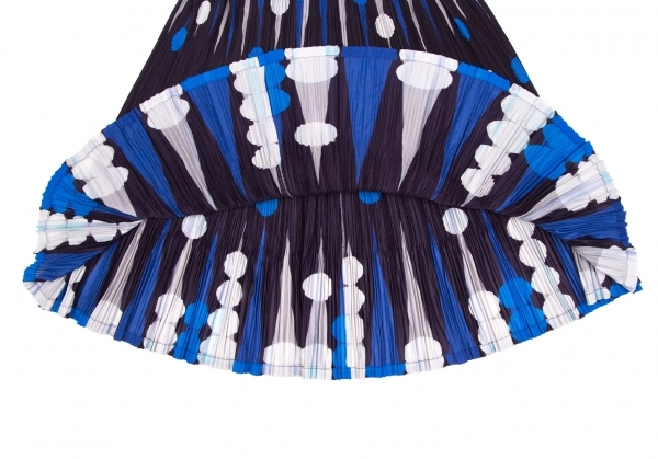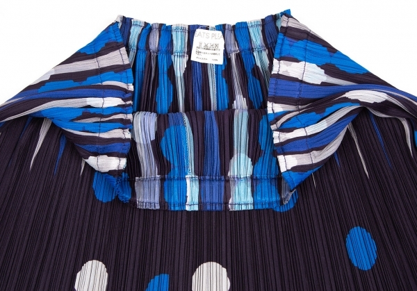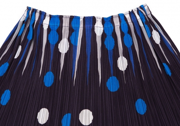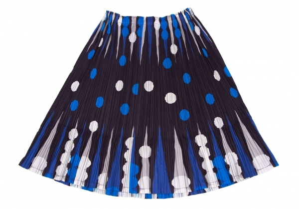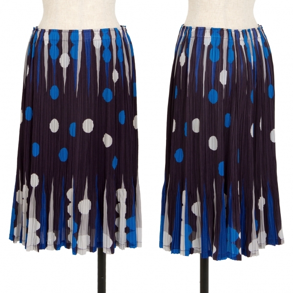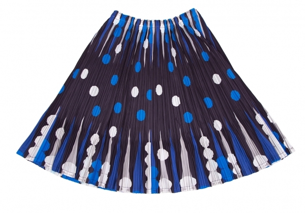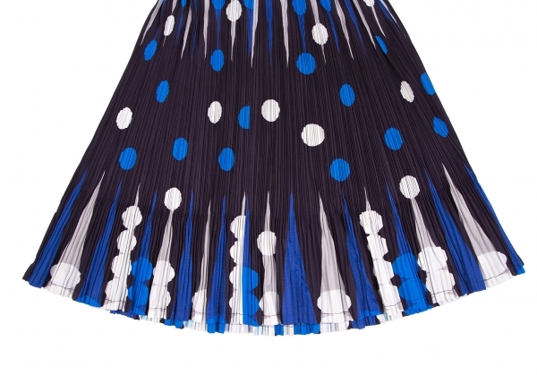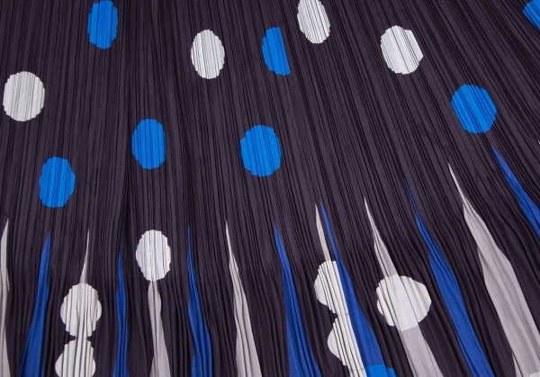 プリーツプリーズPLEATS PLEASE 消しプリーツ切替ドットプリントスカート 紺青グレー5 |