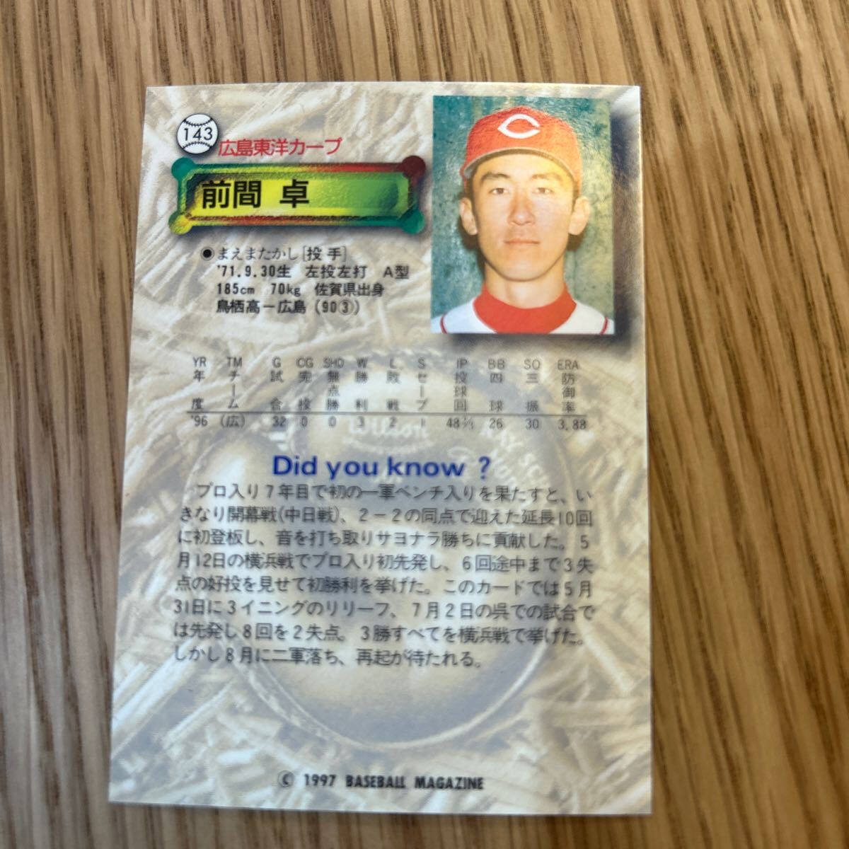 1997BBM 143 前間卓 広島カープ