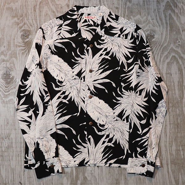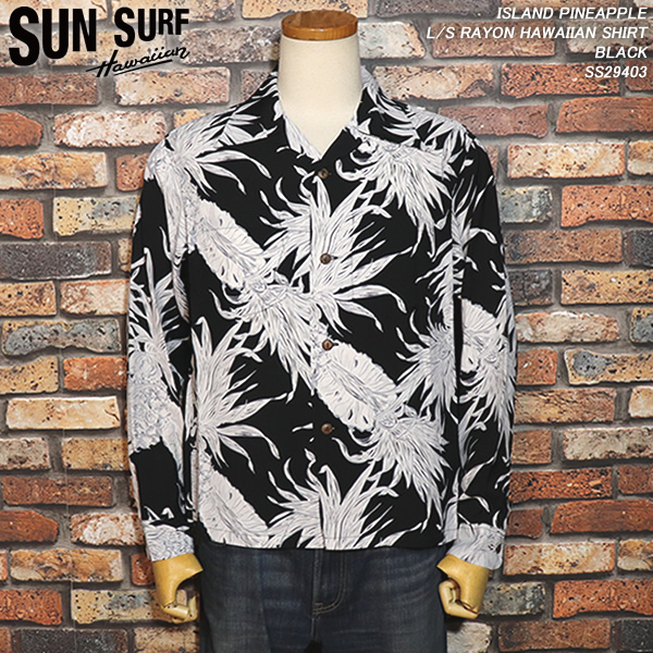 BLACK【XXL】SUN SURF サンサーフ  ISLAND PINEAPPLE アイランド・パイナップル 長袖ハワイアンシャツ  SS29403 東洋エンタープライズ