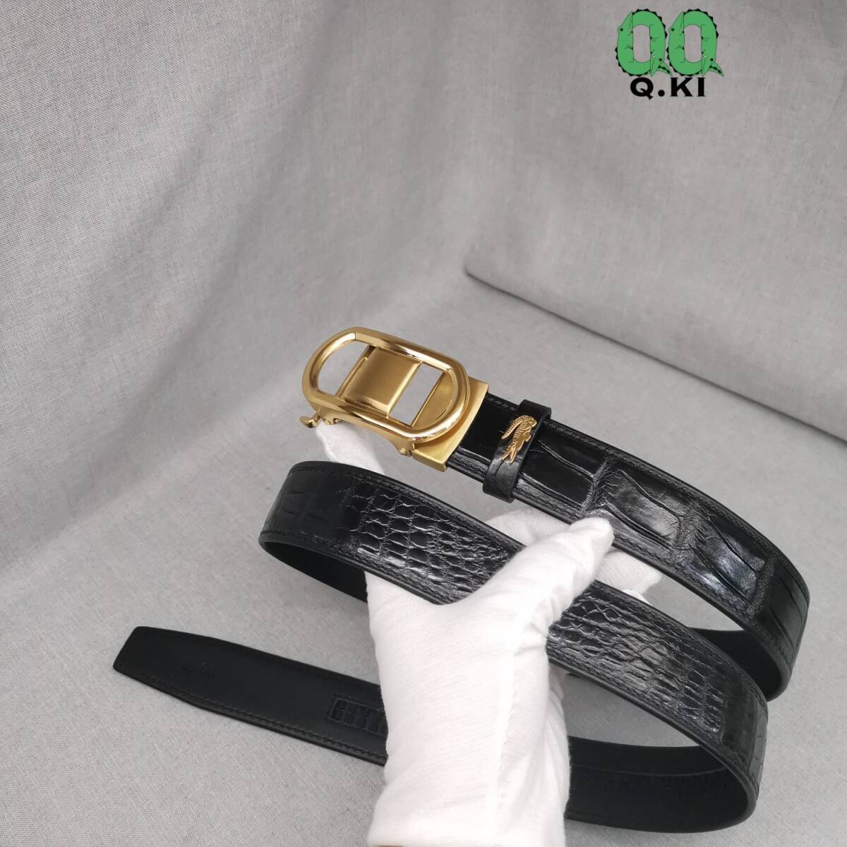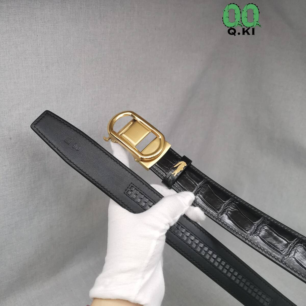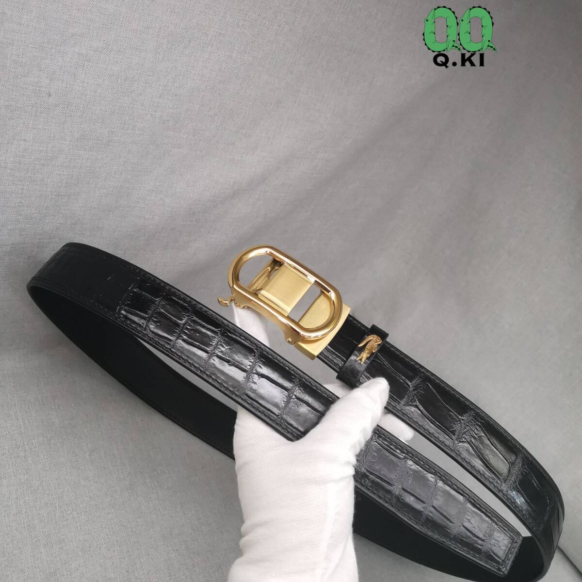 クロコダイル本物 メンズベルト スライド式 サイズ調整可能 一枚革 ワニ革腹革使用 繋ぎなし ゴールドバックル付き 黒