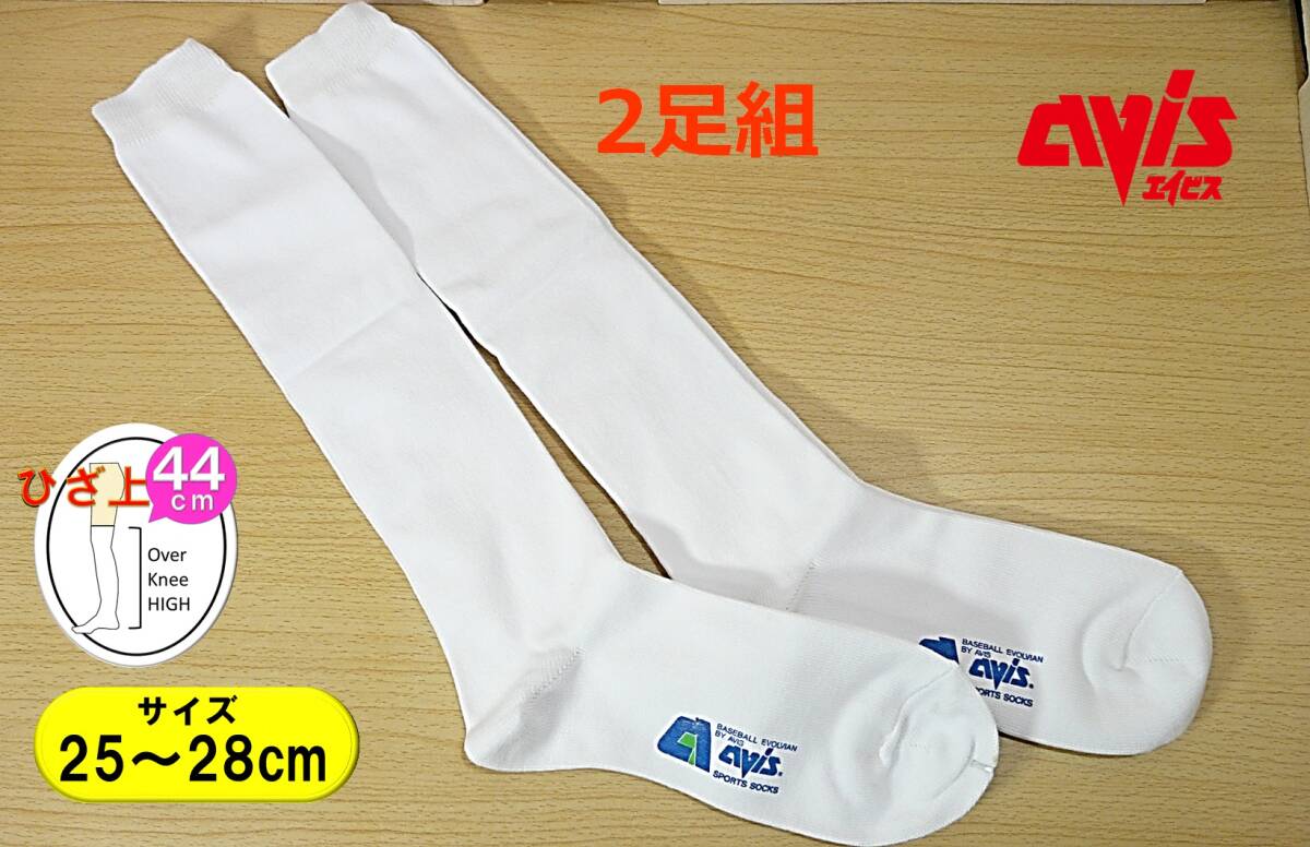 【未使用品★レッグウェア】avis◆白 ハイソックス◆2足セット◆アンダーソックス◆しっかり厚手◆25-28cm◆44cm丈◆よく伸びる◆