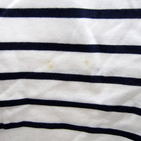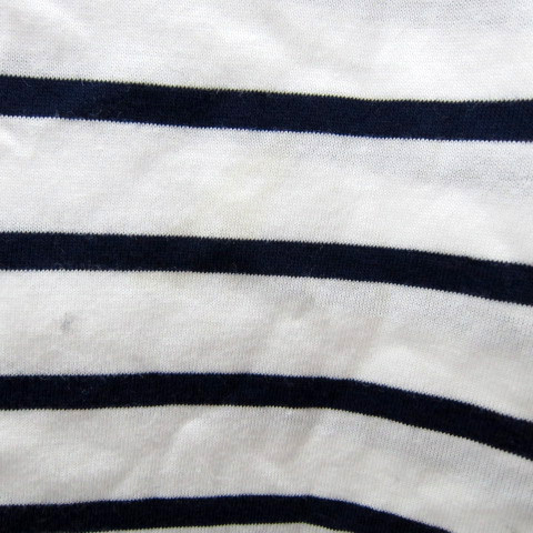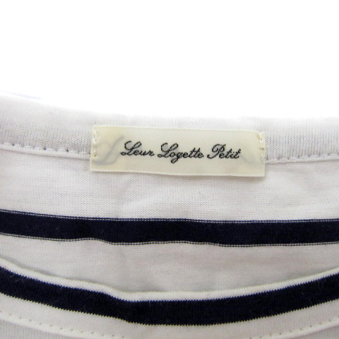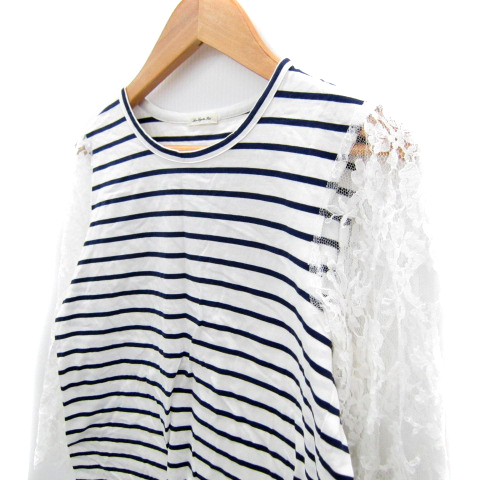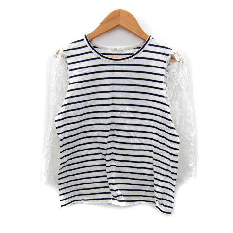ルルロジェッタ ルールロジェット カットソー 七分袖 ラウンドネック ボーダー柄 切替 レース シースルー 1 白 紺 レディース