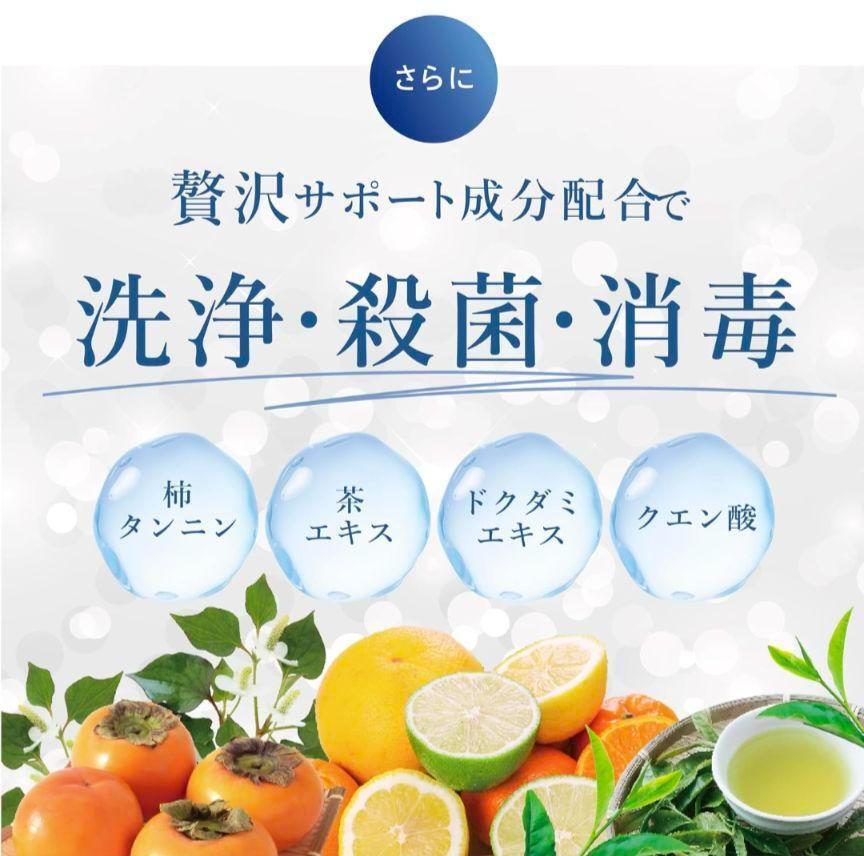 イソプロピルメチルフェノールが菌を殺菌、グリチルリチン酸ジカリウムが肌の炎症を抑え、天然成分の柿タンニン、茶テキンが肌を綺麗な状態にさっぱり感と爽快感を実感していただけます。