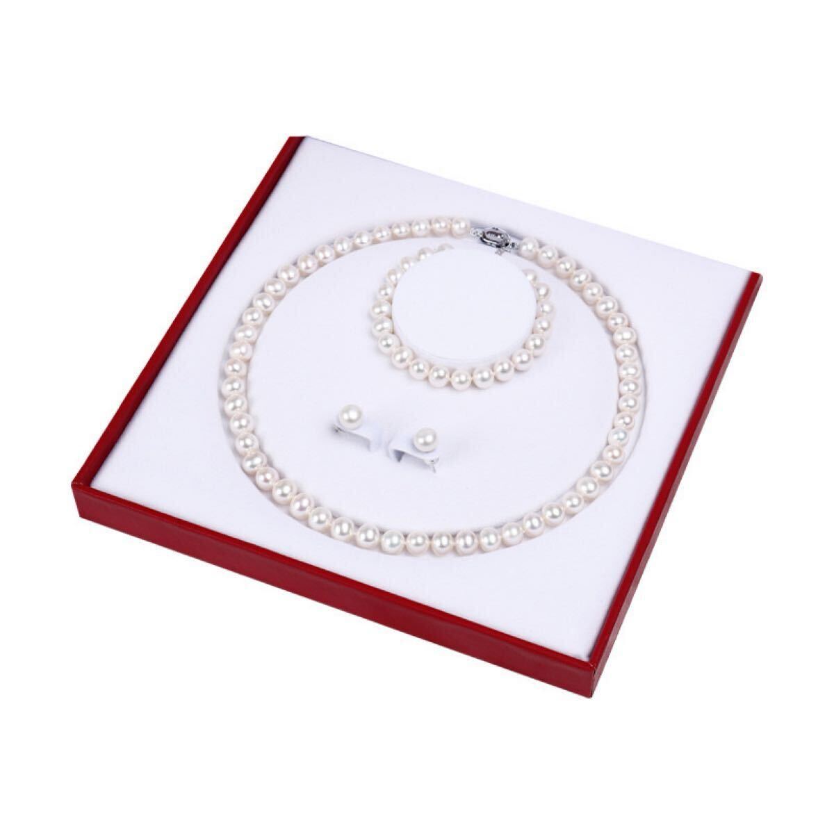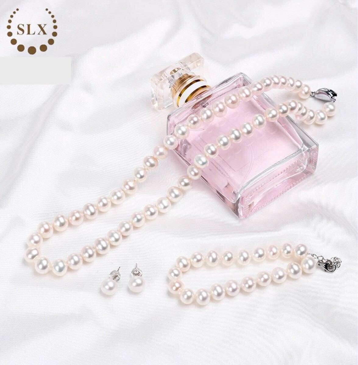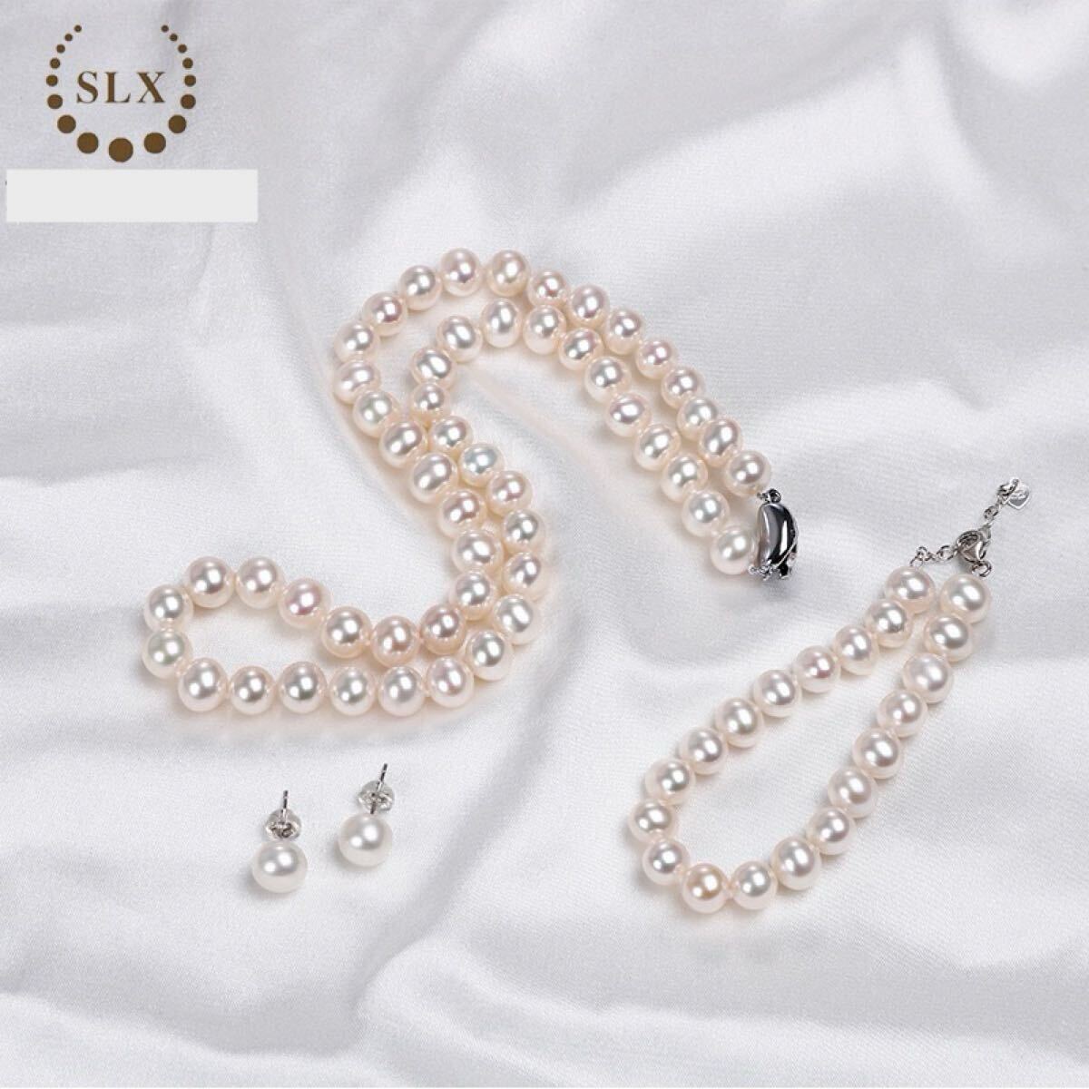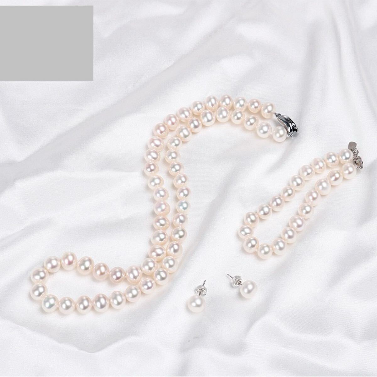 本真珠ネックレス ブレスレットピアス4点セット淡水パールホワイト SILVER 8.0-9.0mm パールネックレス 冠婚葬祭