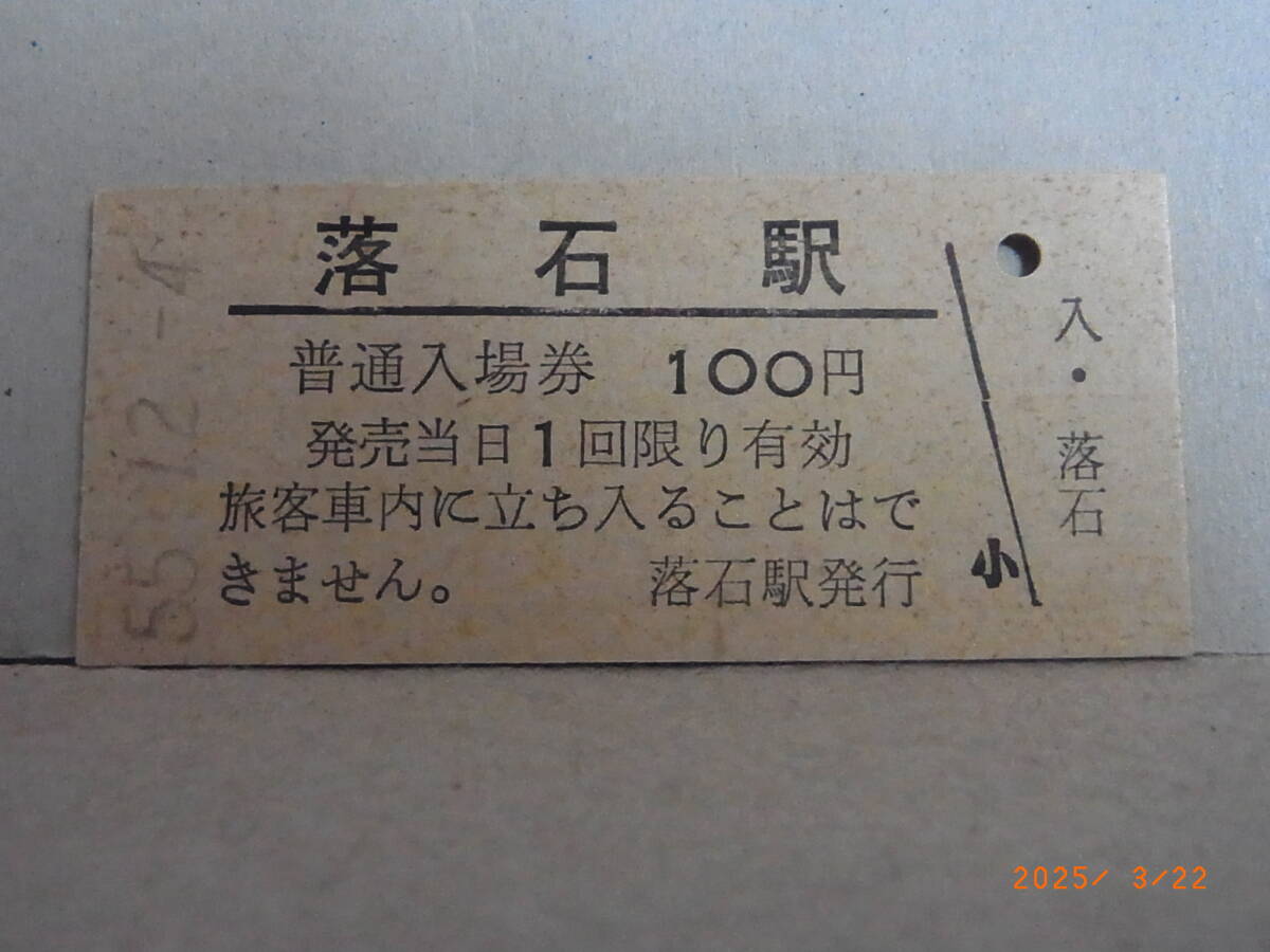 国鉄 根室本線 落石駅 100円普通入場券 昭55.12.4 0564 ★送料無料★
