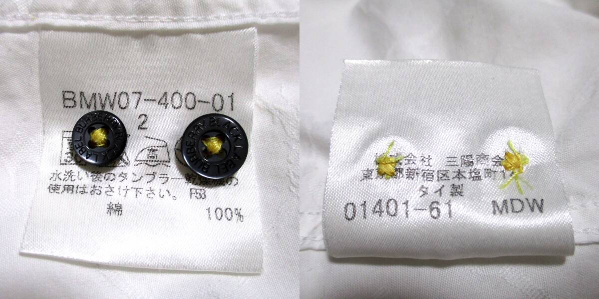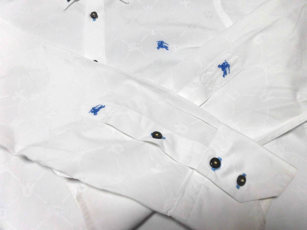 三陽商会株式会社はバーバリーとのライセンス契約終了に伴い、2015年6月末でバーバリー商品の生産・販売を終了しました。 今後、バーバリーブラックレーベル商品の購入は困難になると予想されますので、ぜひこの機会に! シャドーモノグラムBDシャツ。 清潔感の高いホワイトカラーに光の角度で浮かび上がるシャドーモノグラム柄が芸術的な作りの高感度なデザイン性で、ラグジュアリーな大人コーデを演出してくれます☆ 左胸・両袖先のトリプルターコイズホース刺繍、ボタンロゴ刻印でブランドアピールもバッチリ。 上質なコットン生地で着心地も◎ 2ツボタンの高い台襟もお洒落★ 全ての角度から浮かび上がるシャドーモノグラム柄で視線を集めること請け合いのハイグレード大人シャツ♪ カラー:ホワイト サイズ:M(2) 肩幅:約45cm身幅:約52cm着丈:約72cm袖丈:約60cm(多少の誤差はあります。ご了承下さい) 素材:綿100% 株式会社 三陽商会/スペアボタン2コ付き クーポン適用で価格変更や複数落札をご希望の方は質問からいつでもご連絡下さい!! 多少使用感はありますが、古着としましては美品になり、これからもご活躍いただけると思います。 しかし、あくまで古着での出品になります。 神経質な方や古着を理解できない方は入札をご遠慮下さい。 | |||