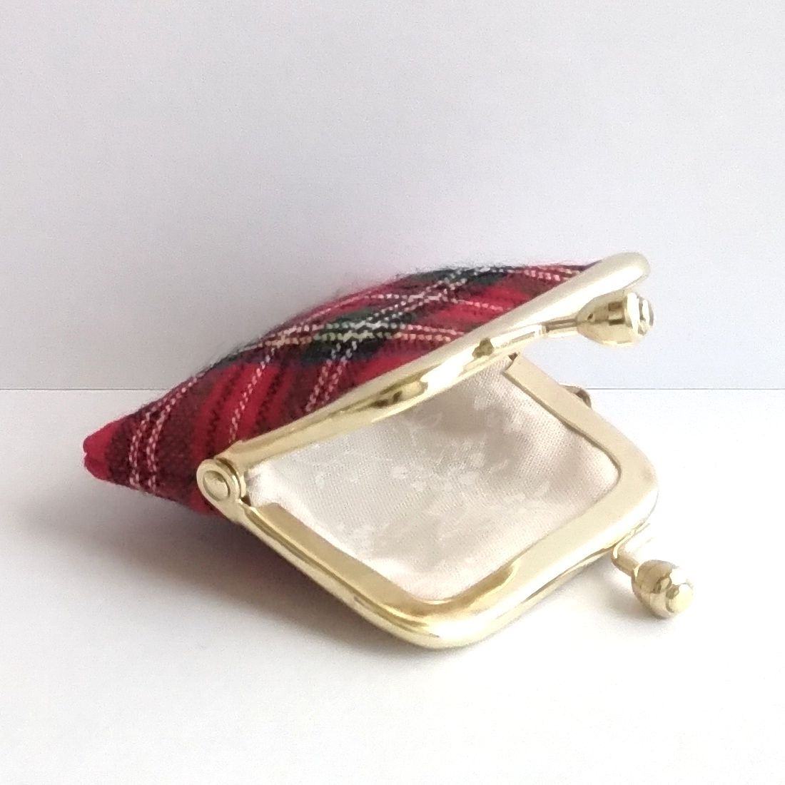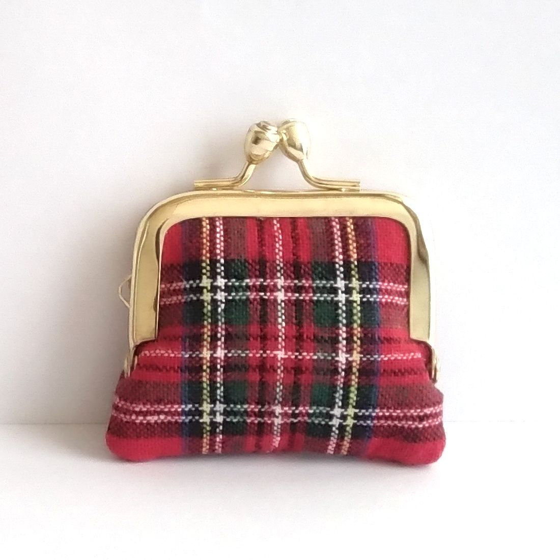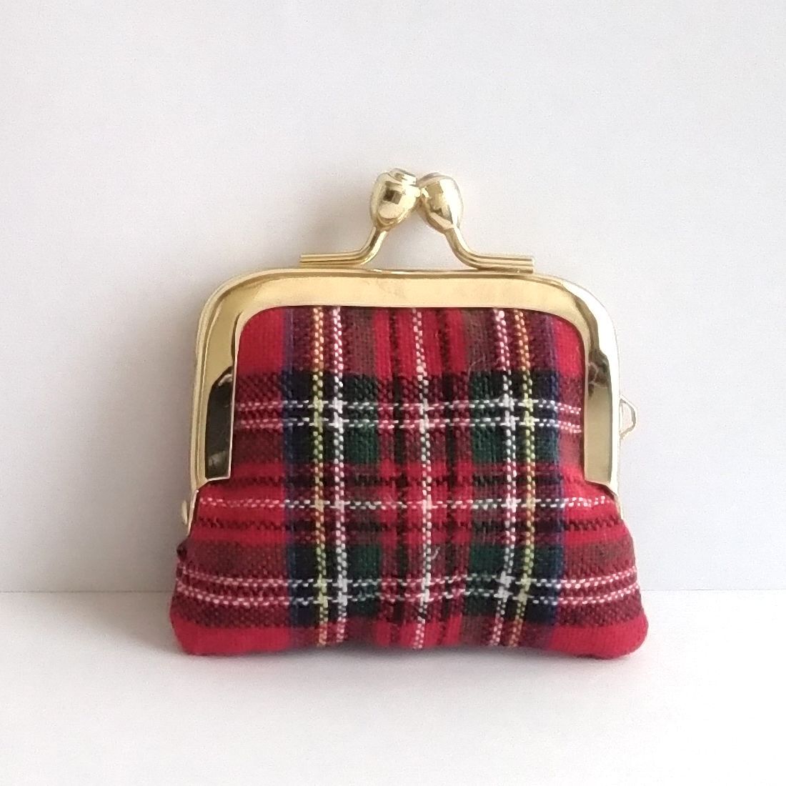 ●櫻●【角がま口】小さいがまぐち♪豆蔵♪394:【送料無料】がま口小物入れ,コインケース,小さい財布,お薬ケース,チェック,格子柄,縞模様