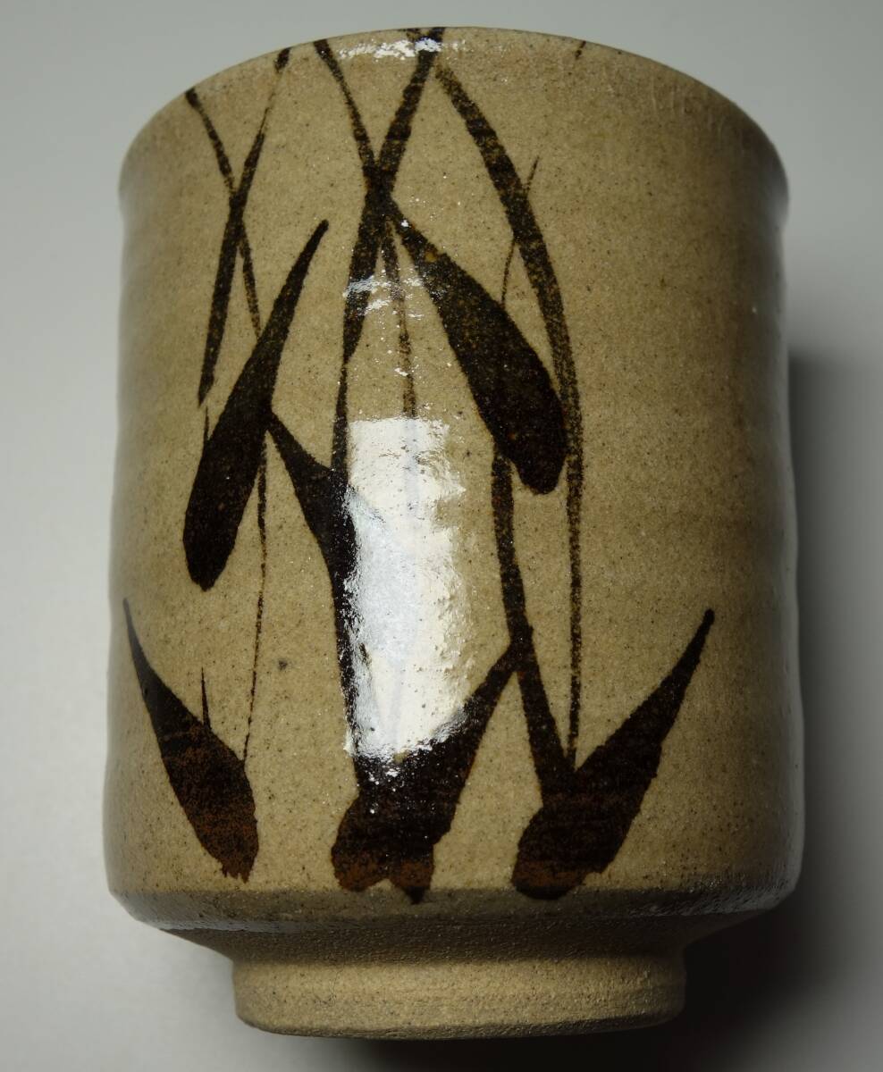 手造り 銘入り 唐津 クマ笹図 湯呑 岸岳窯三帰庵 冨永氏作