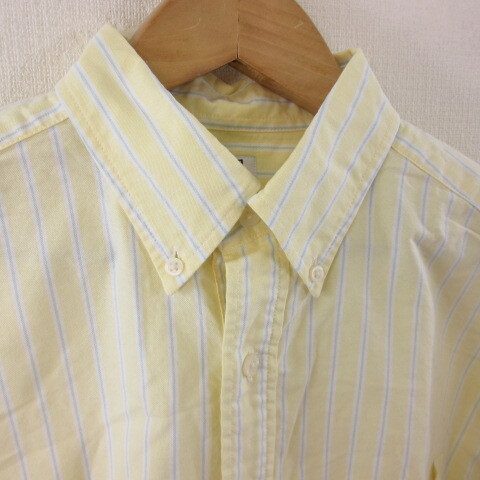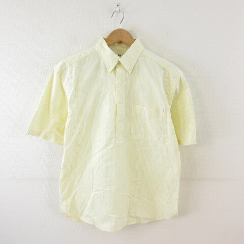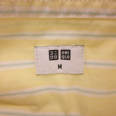 ユニクロ UNIQLO オックスフォードストライププルオーバー 半袖 黄 M *T656 メンズ