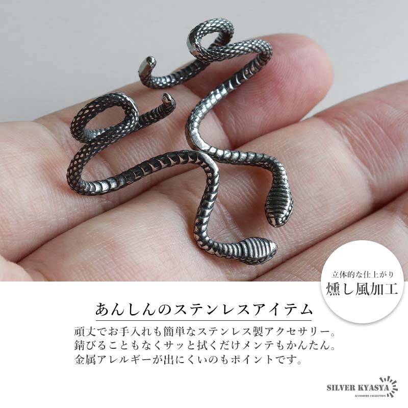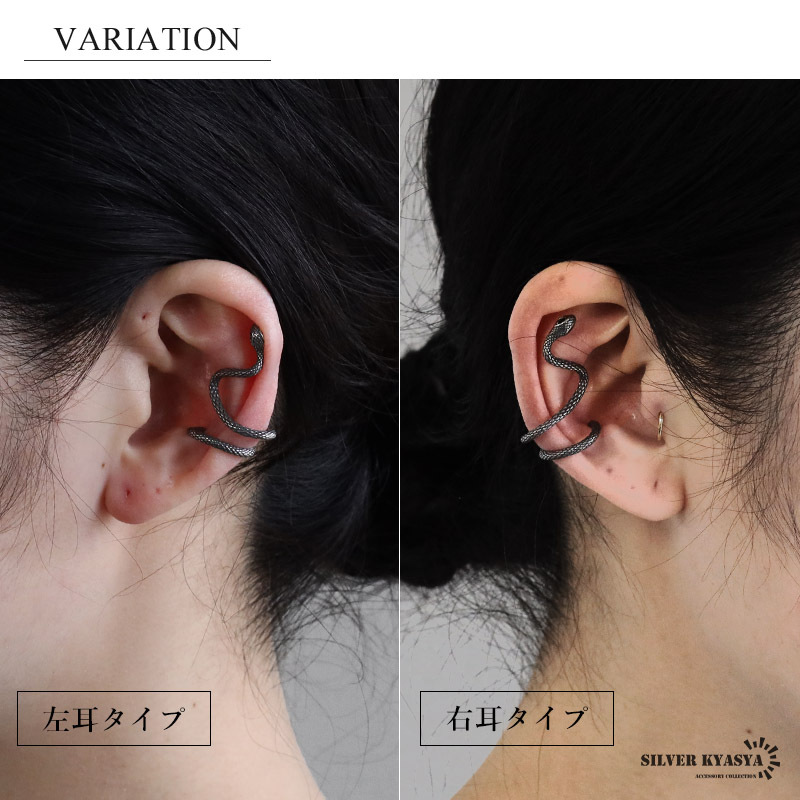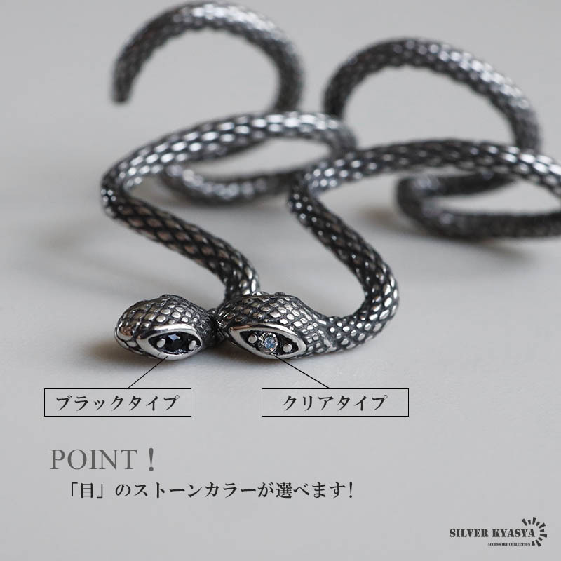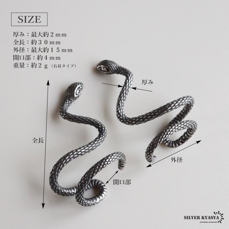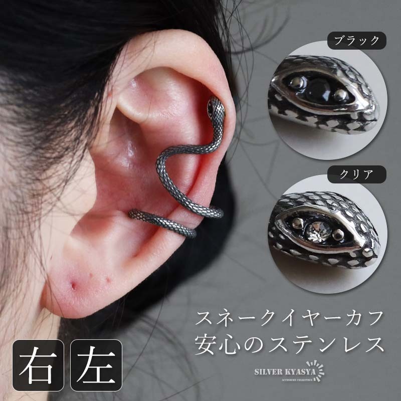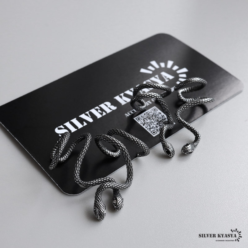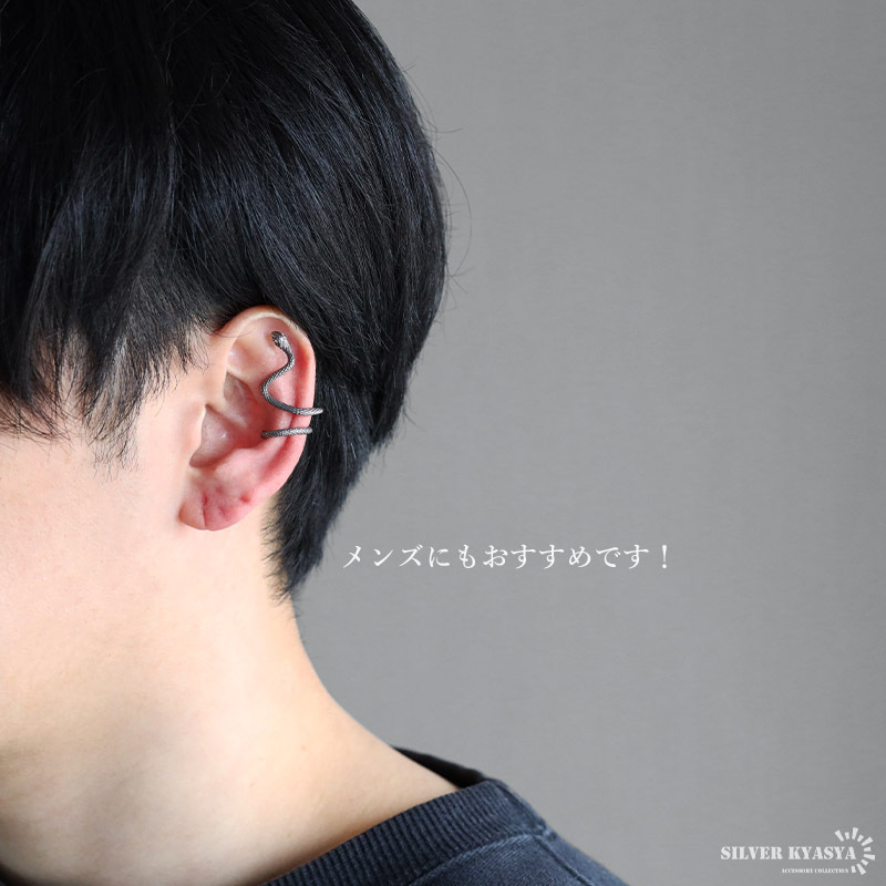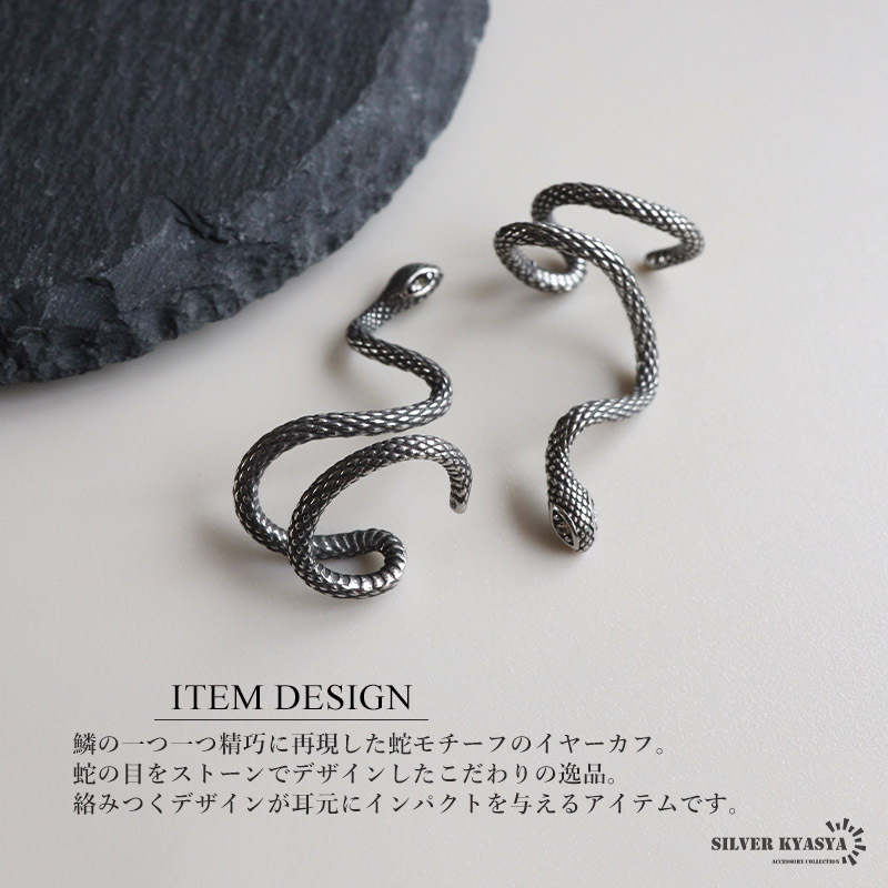鱗の一つ一つ精巧に再現した蛇モチーフのイヤーカフ。蛇の目をストーンでデザインしたこだわりの逸品。絡みつくデザインが耳元にインパクトを与えるアイテムです。