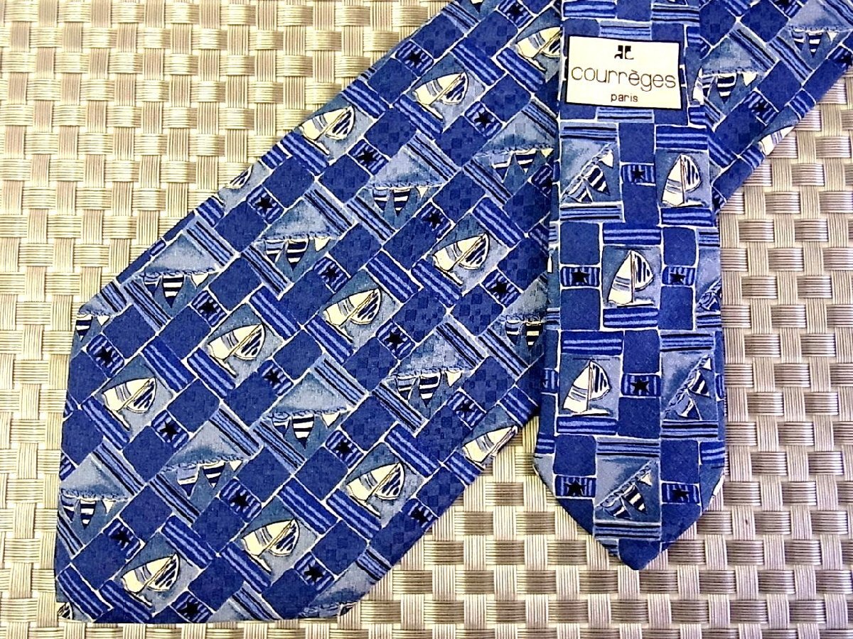 【在庫処分セール】●特売●FK2-0497●クレージュ【船 ヨット 乗り物 柄】ネクタイ●