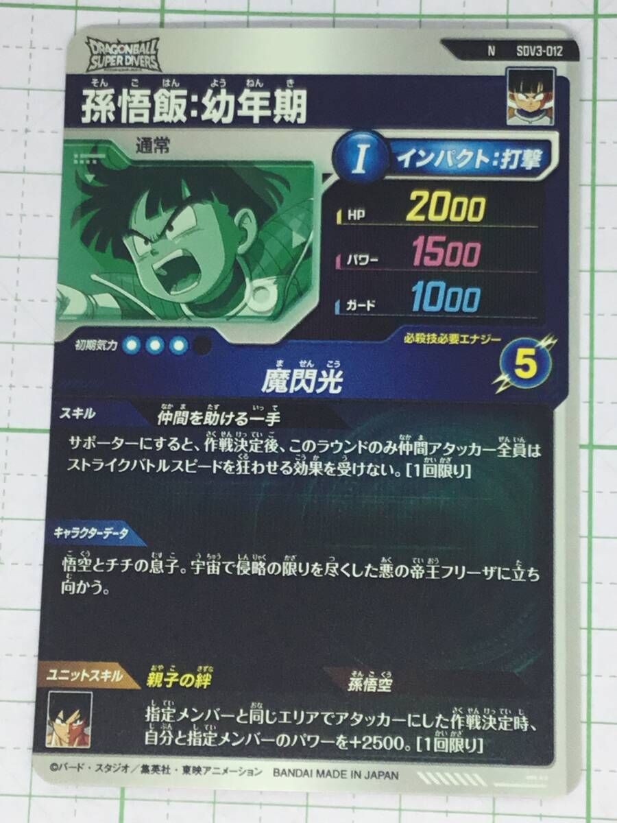 即決★ドラゴンボールスーパーダイバーズ 第3弾★SDV3-012 N 孫悟飯:幼年期 1枚 【同梱可 5枚まで送料85円】