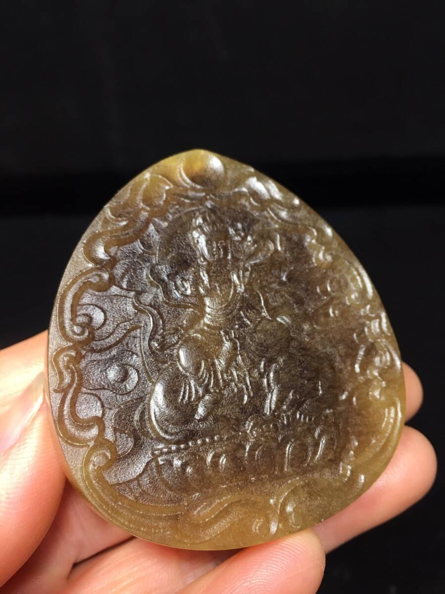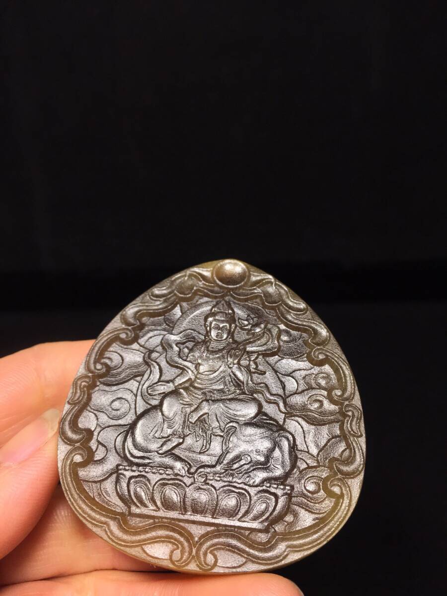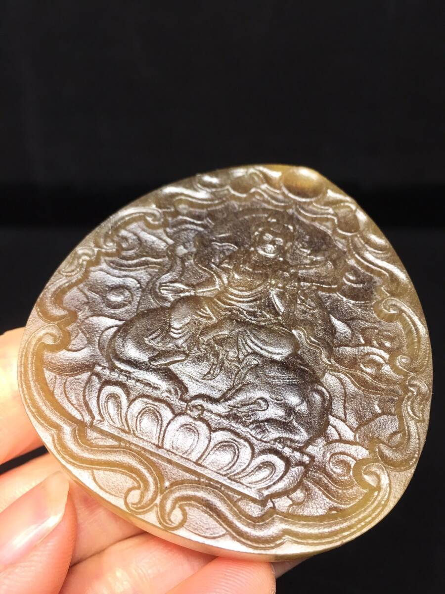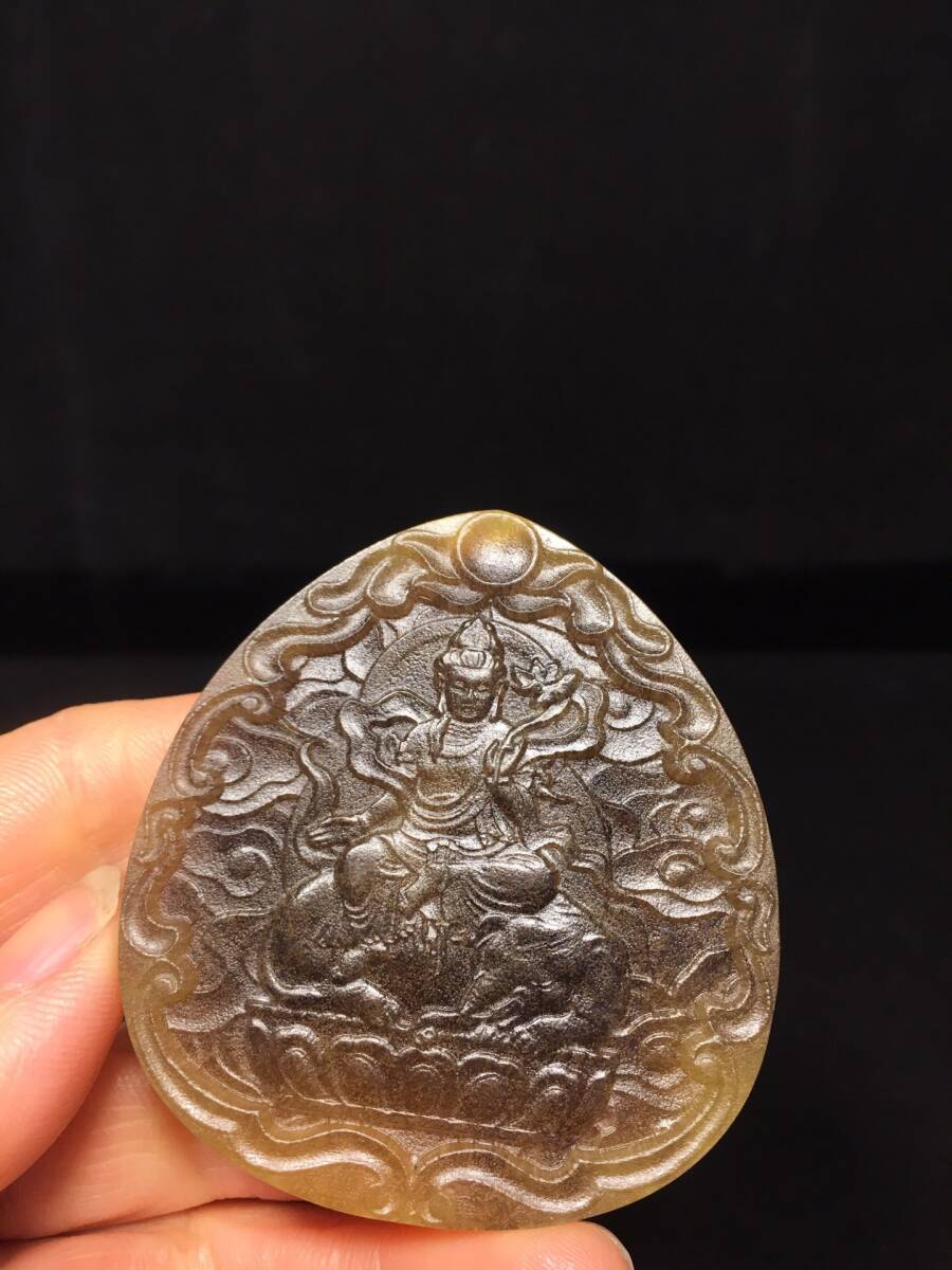 【仁】『角材細密彫・普賢菩薩牌・根付・裝身具』極細工 古賞物 中国古玩 古美術 古美味