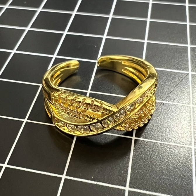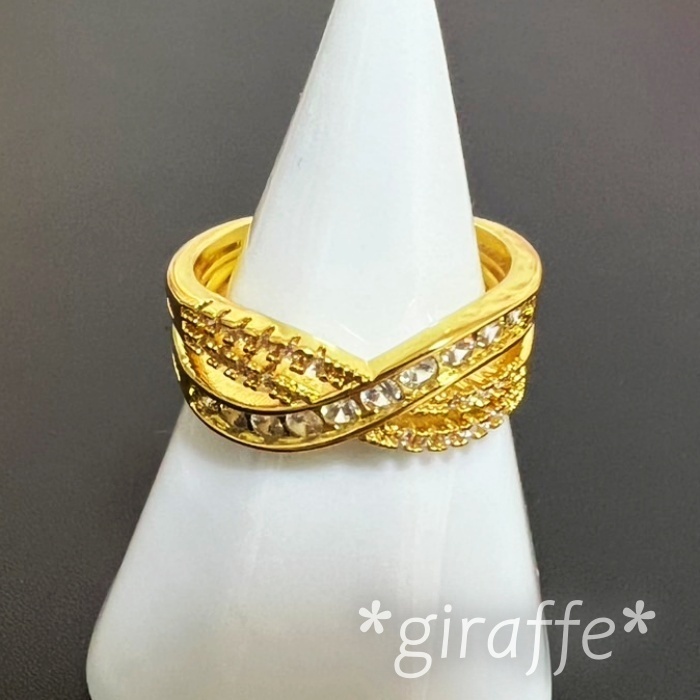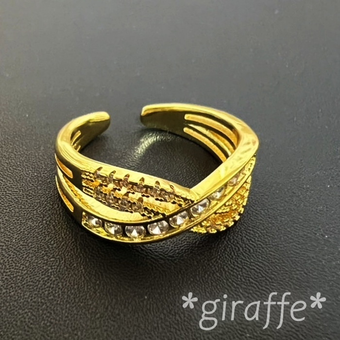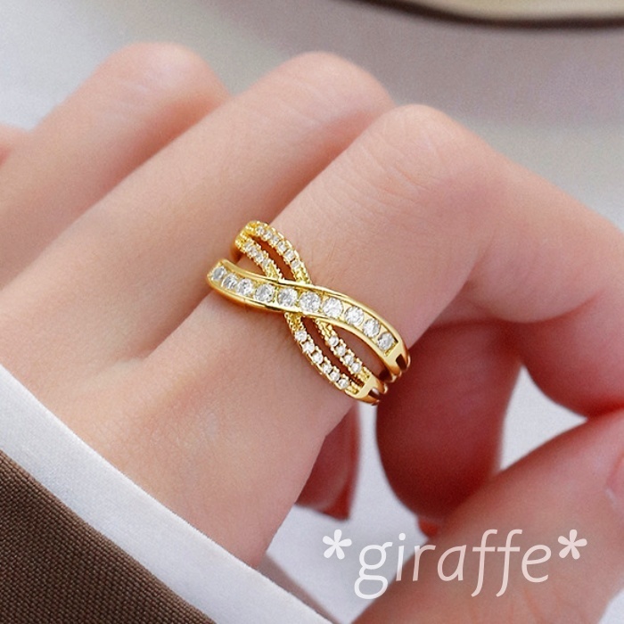 A860 匿名配送 指輪 レディース ゴールド リング ジルコニア 交差 多重 フリーサイズ サイズ調節可能