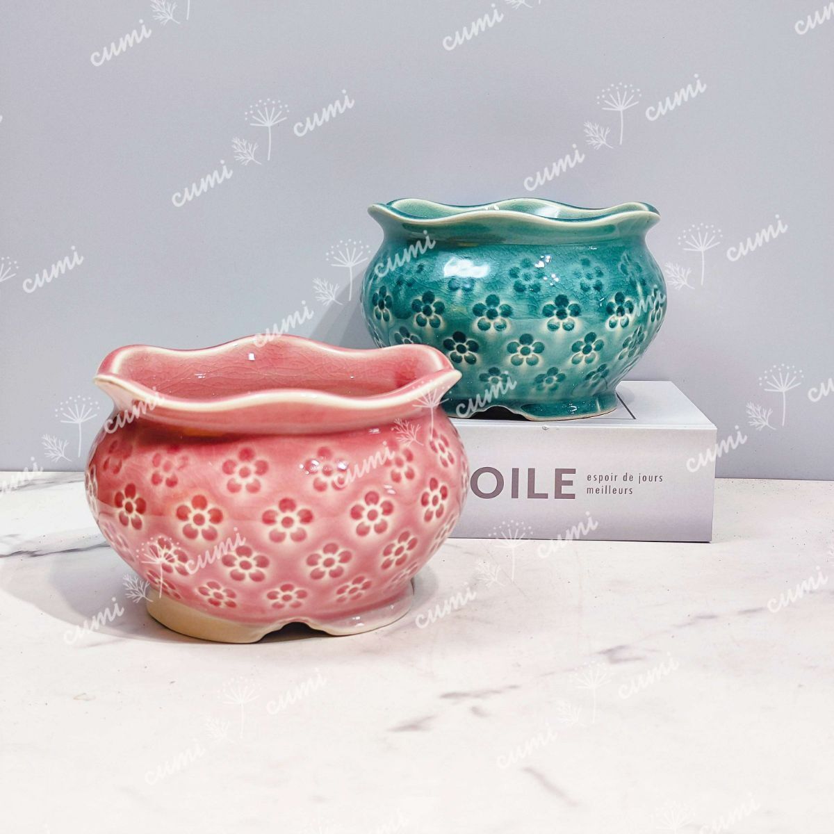 2個セット 韓国 梅の花 窯変 植木鉢 室内 陶器鉢 多肉 植物 鉢植え 激安 レア インテリア プレゼント 海外 盆栽 おすすめ