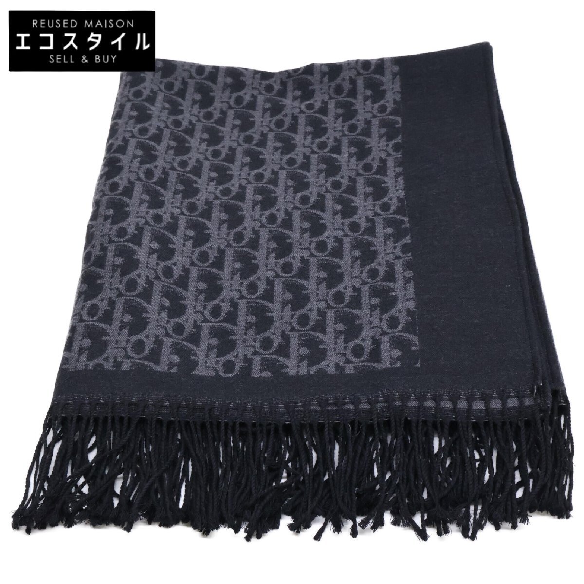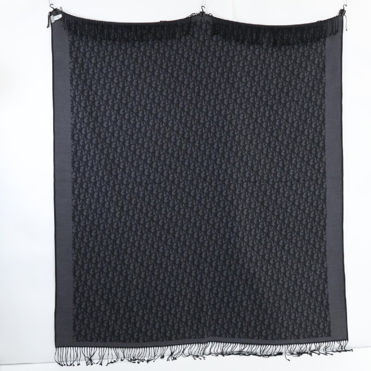 美品/ DIOR ディオール 92Z0001A0106 オブリーク ウール 大判ブランケット/ ストール グレーxブラック メンズ