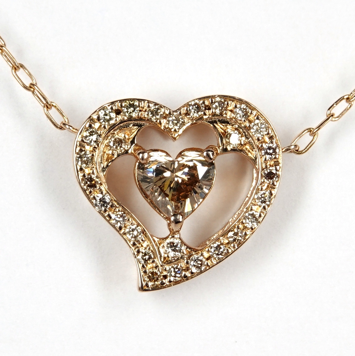 真ん中にハートシェイプカットのブラウンカラーのダイヤモンドが入っております。