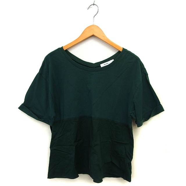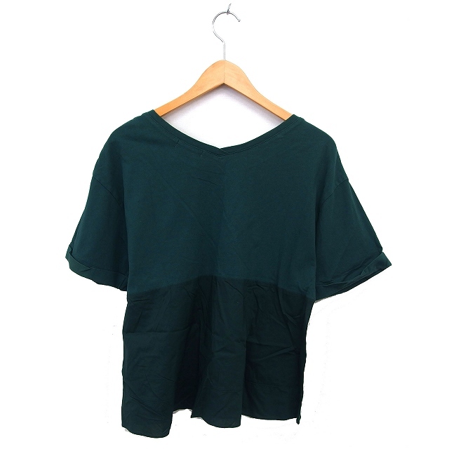 ニコアンド Niko and.. ボートネック カットソー ロールアップ 切替 コットン 綿 五分袖 L 緑 グリーン /NT17 レディース