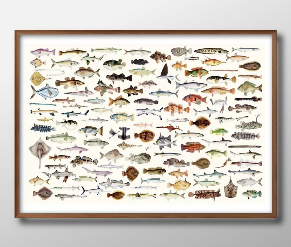 8836■送料無料!!アートポスター 絵画 A3サイズ『魚 図鑑 魚類 海洋生物 海洋学 海』イラスト 北欧 マット紙