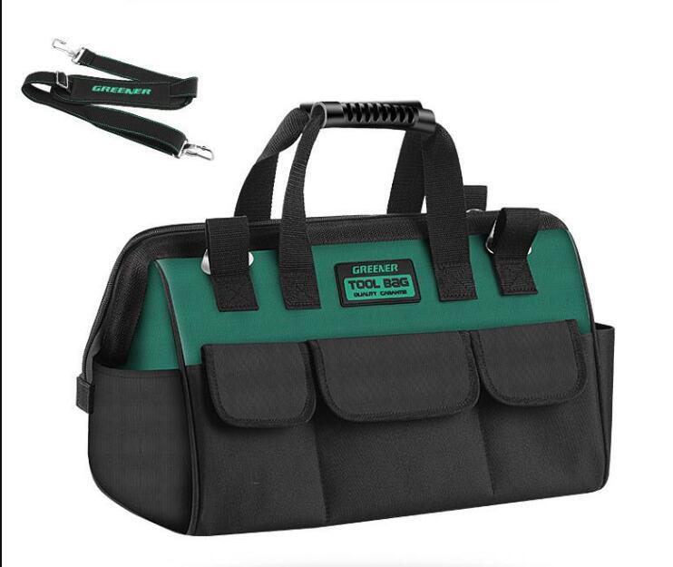人気品未使用ツールバッグ 工具バッグ 工具袋 道具袋 工具差し入れ 大口 大容量 工具 大工道具 肩掛けベルト付き オックスフォード13インチ
