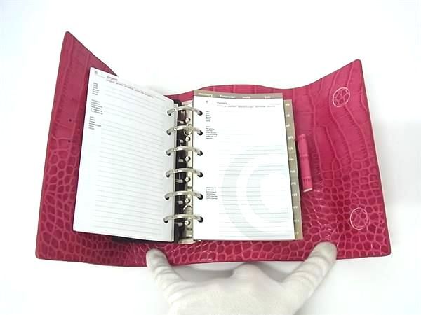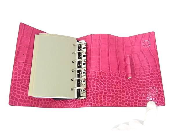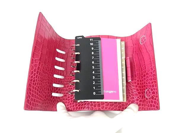 ■極美品■ emanuel ungaro ウンガロ クロコダイル型押しレザー 6穴式 手帳カバー スケジュール帳 レディース ピンク系 BJ7775