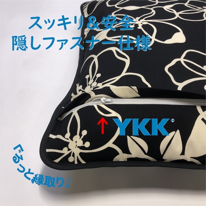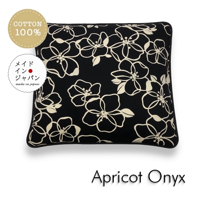 銘仙判座布団カバー アプリコット オニキス 北欧 花柄 黒 ざぶとんカバー 55×59cm 綿100%